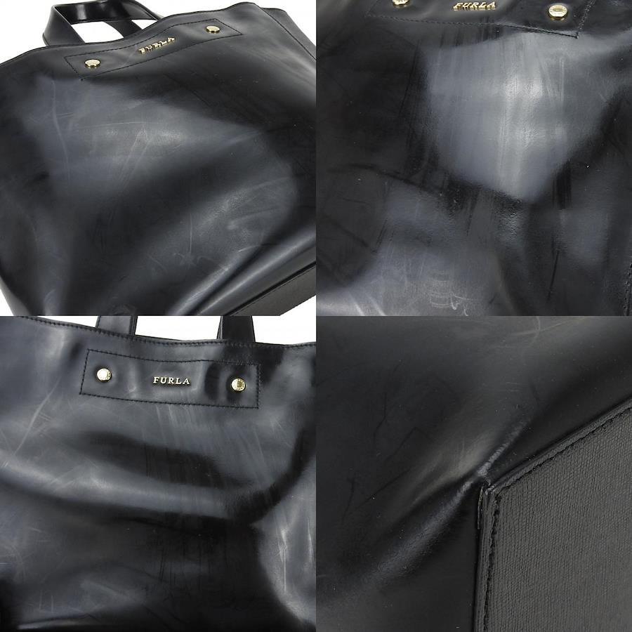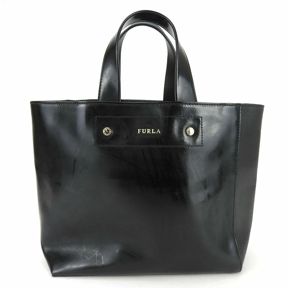 品名【中古】 フルラ ハンドバッグ エナメル レザー ブラック ゴールド金具 シンプル レディース 女性 Furla