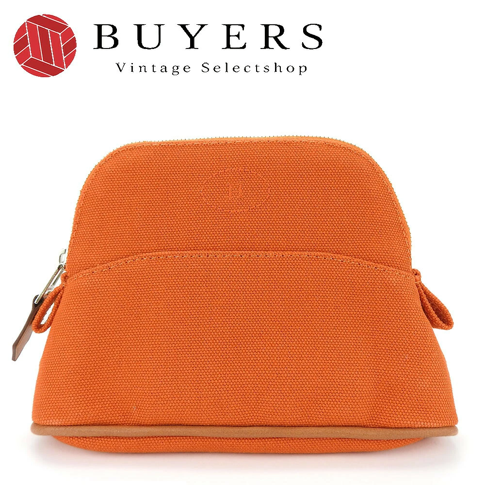 品名【中古】 エルメス ポーチ ボリード ミニミニ コットン ORANGE FEU オレンジ シルバー金具 小物 化粧ポーチ レディース 女性 HERMES