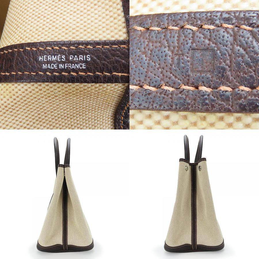 | 品名 | 【中古】 エルメス ハンドバッグ ガーデンパーティPM キャンバス レザー ベージュ系 ダークブラウン シルバー金具 □I刻印 カジュアル 普段使い HERMES |