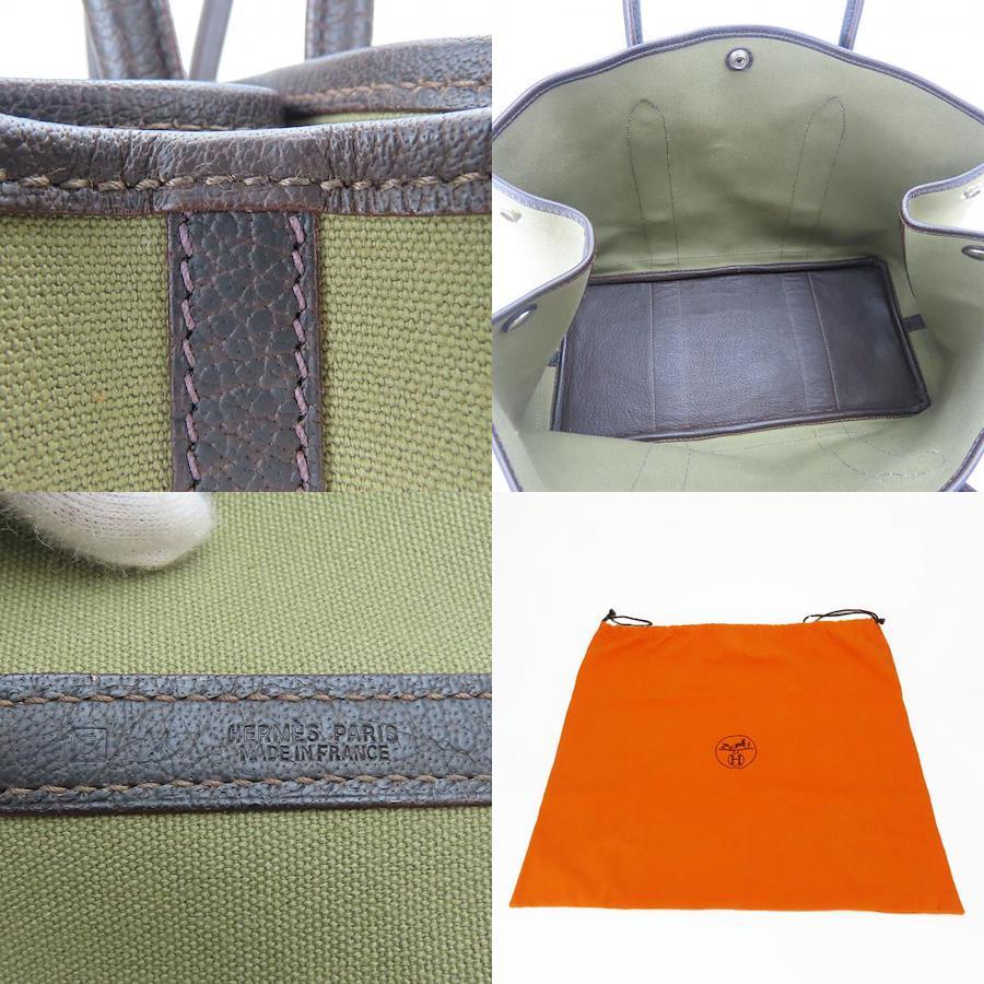 | 品名 | 【中古】 エルメス トートバッグ ガーデンパーティPM キャンバス レザー カーキ ブラウン シルバー金具 □F刻印 カジュアル 普段使い HERMES |