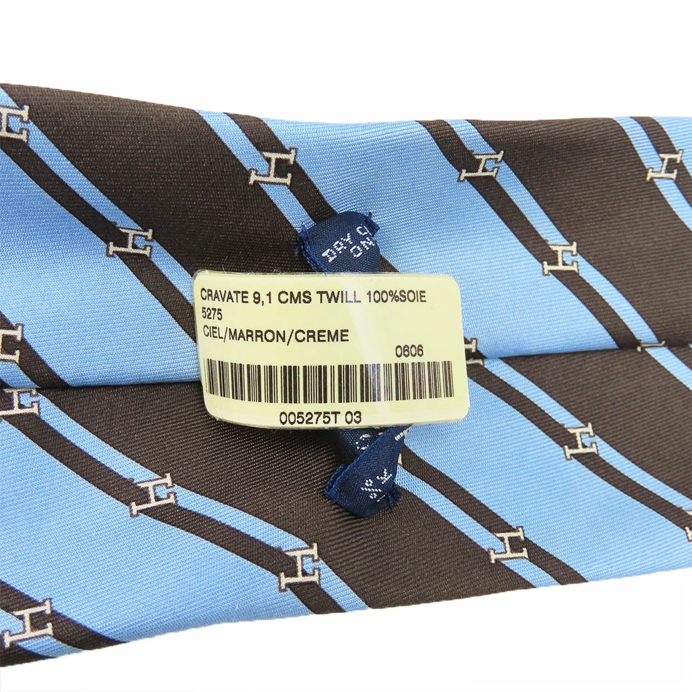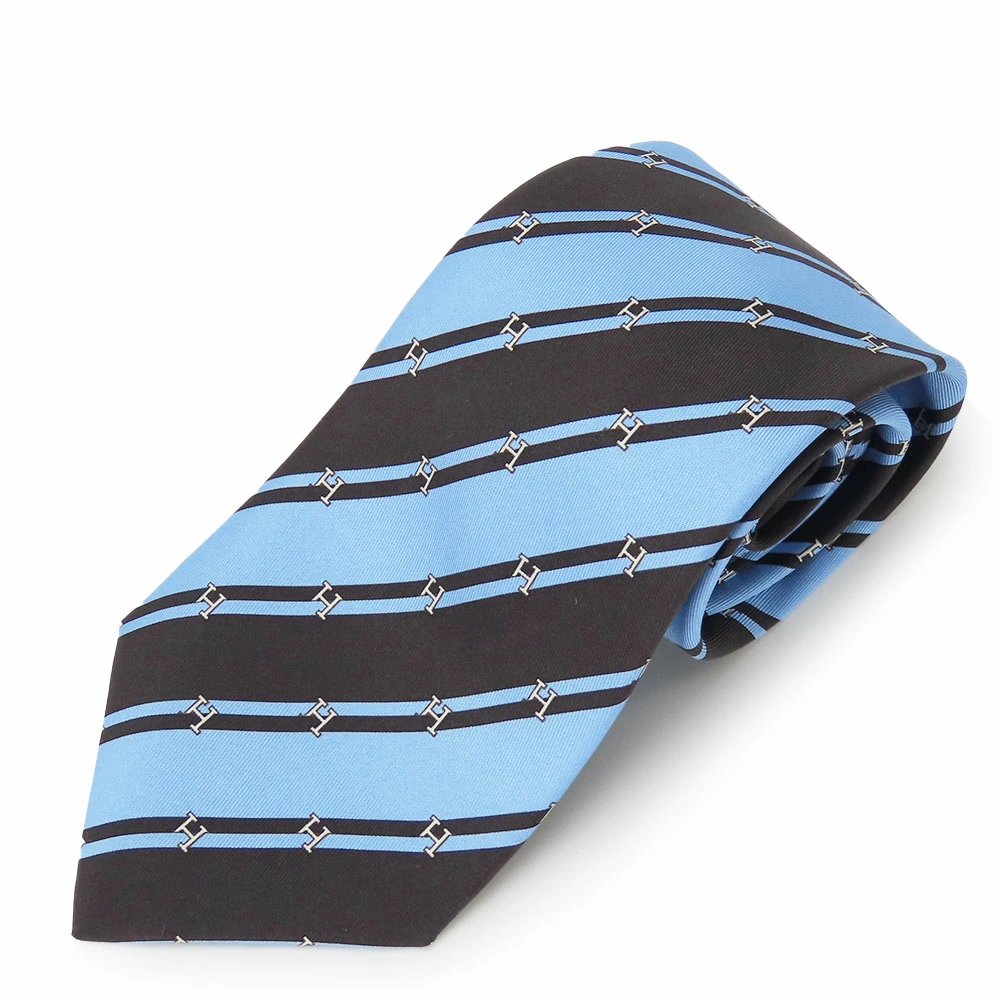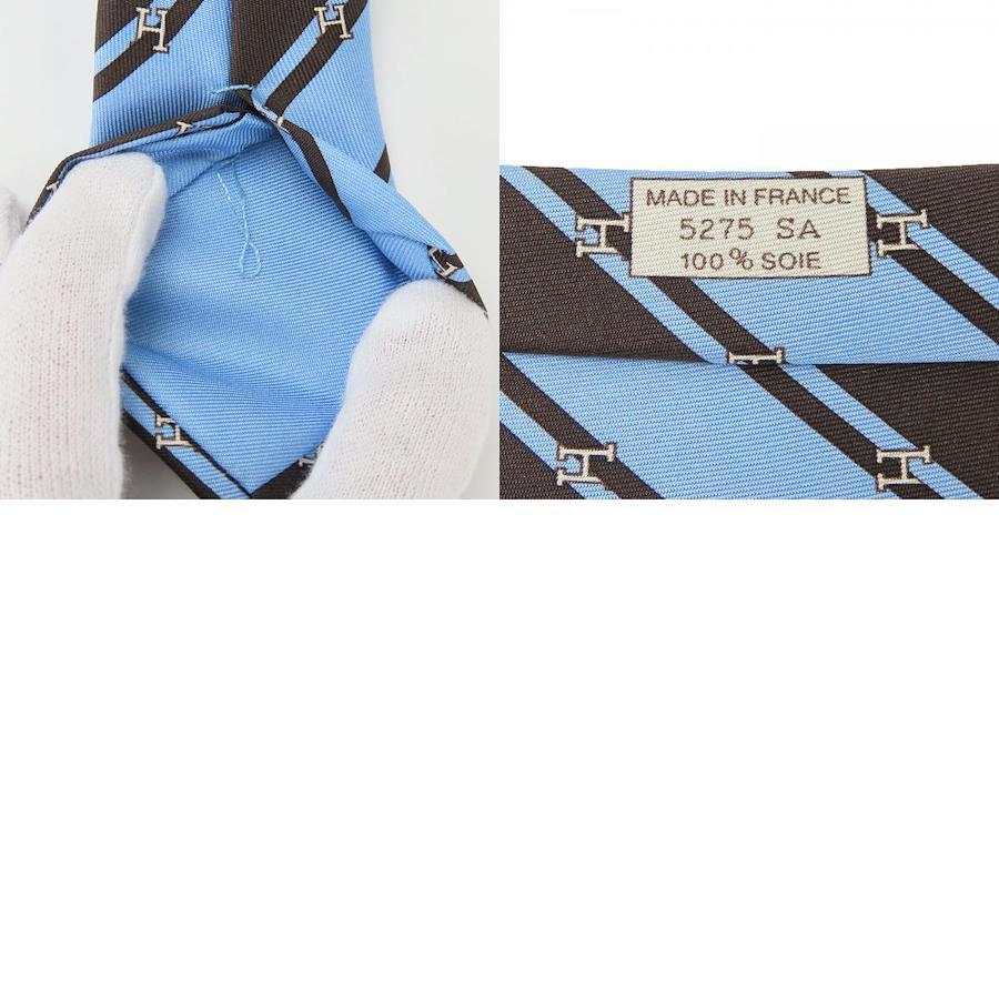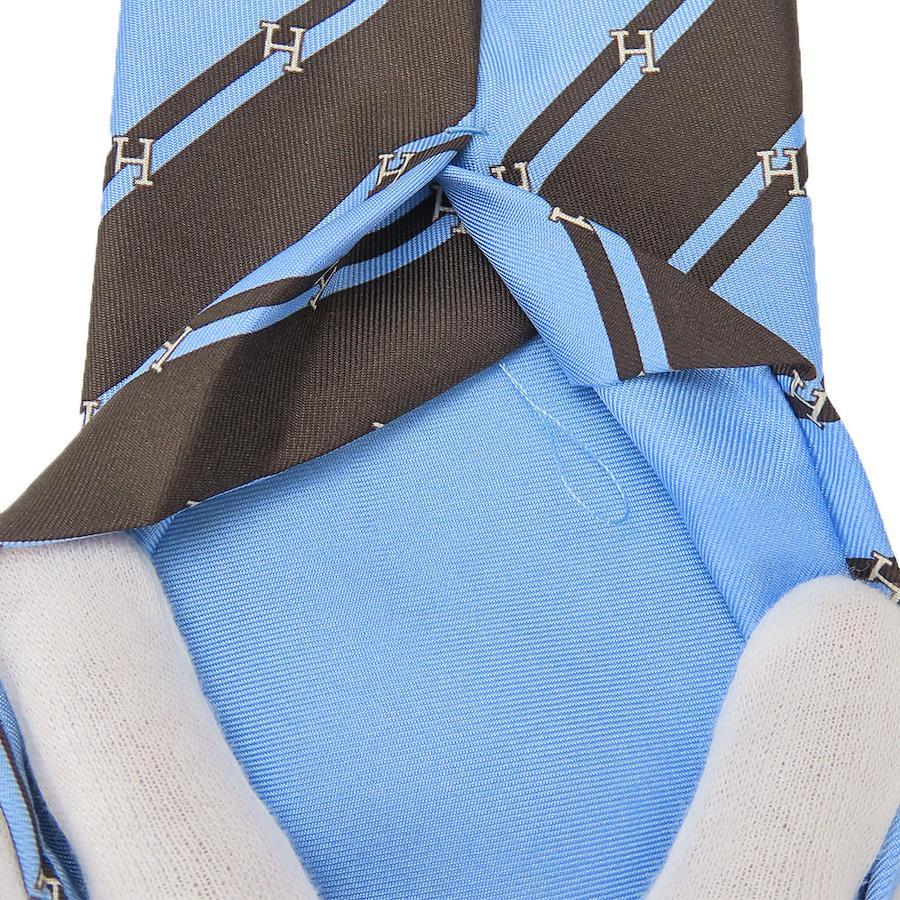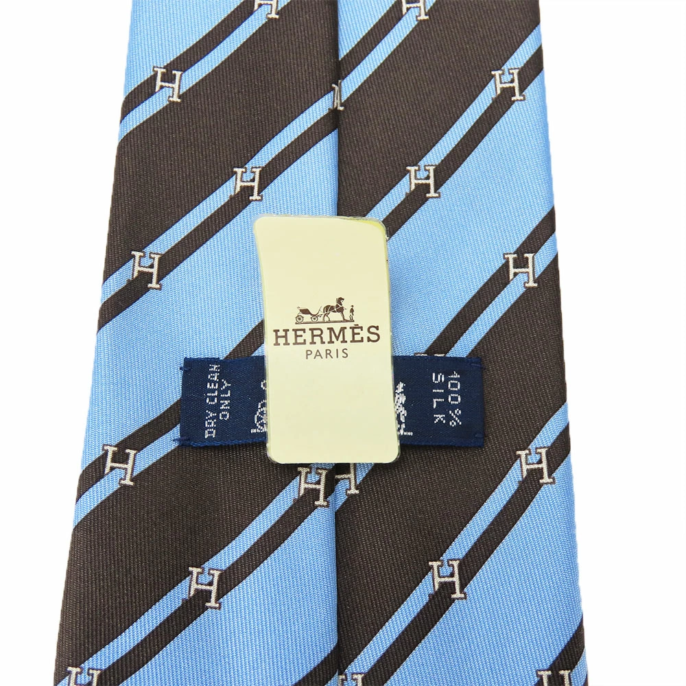 | 品名 | 【中古】 エルメス ネクタイ Hロゴ シルク ブルー系 ダークブラウン レジメンタル スーツ ビジネス メンズ 男性 HERMES |