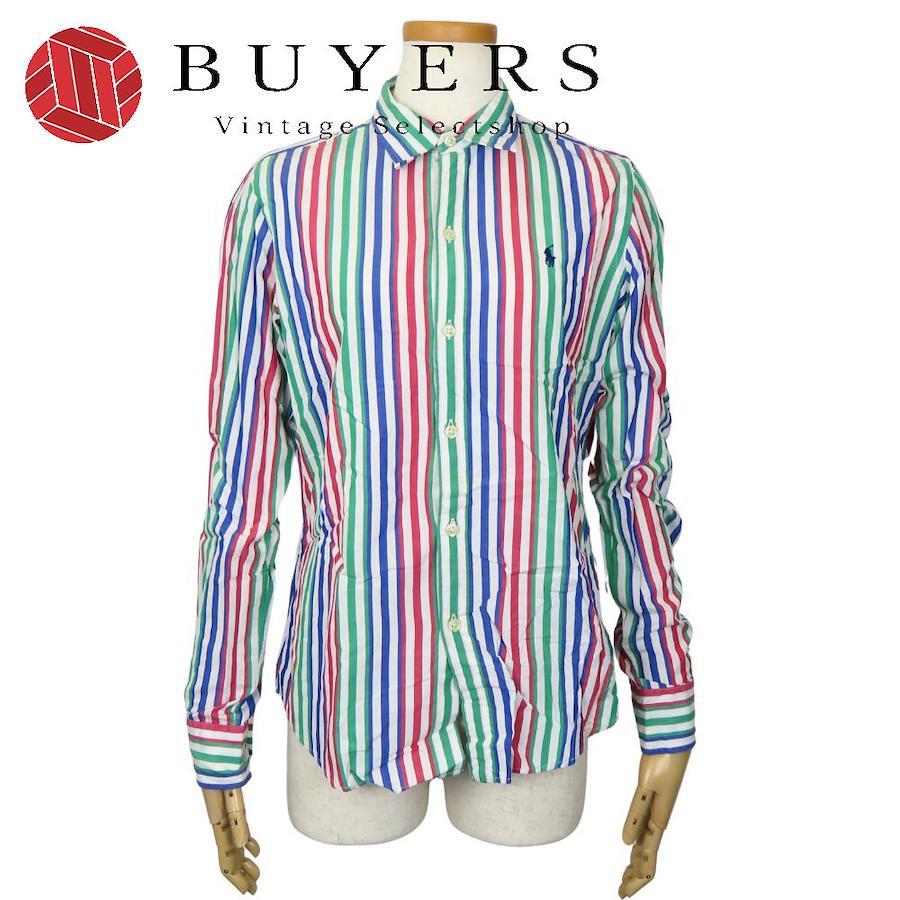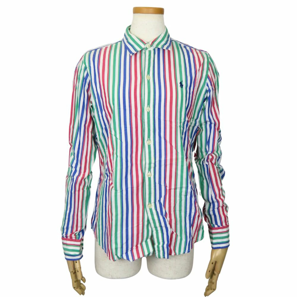 | 品名 | 【中古】 ラルフローレン 長袖シャツ スポーツ 9 綿 ホワイト マルチカラー ストライプ スリムフィット アパレル レディース 女性 RALPH LAUREN |