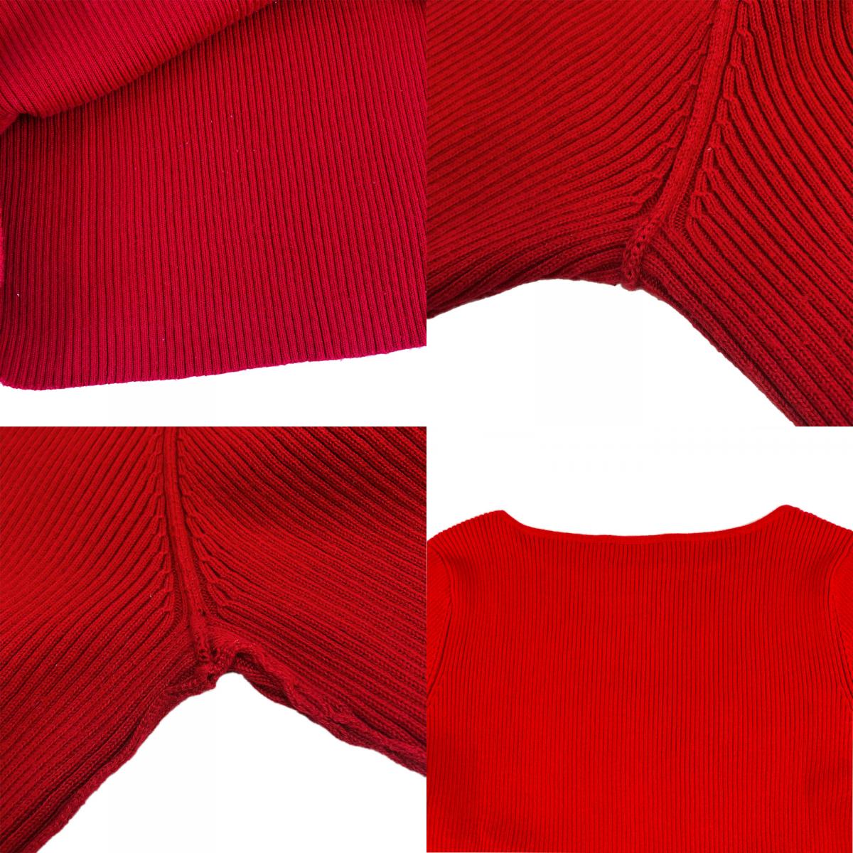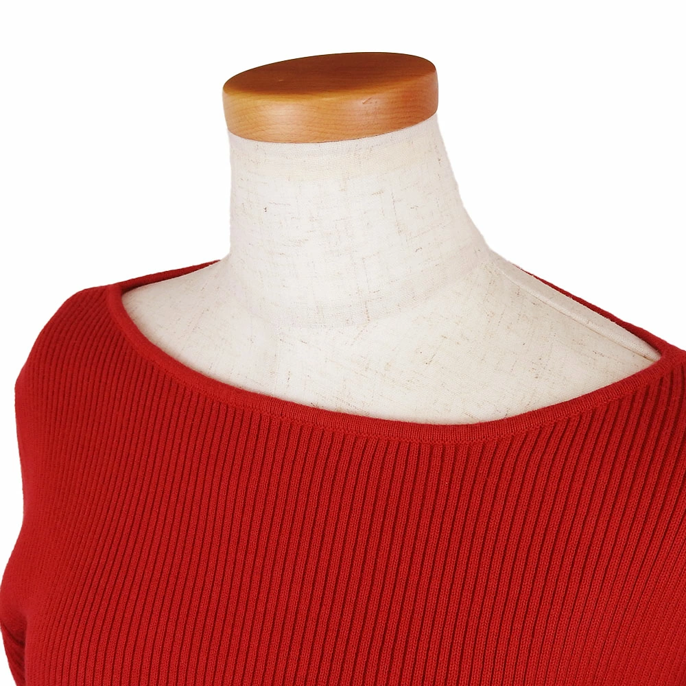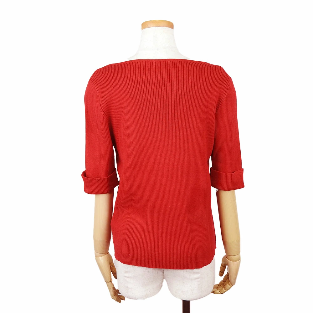 [10% OFF!! Rakuten Super Sale!!] [Pre-owned] Ralph Lauren Women's Ribbed Knit Shirt, Size M, Red, Cotton, Boat Neck