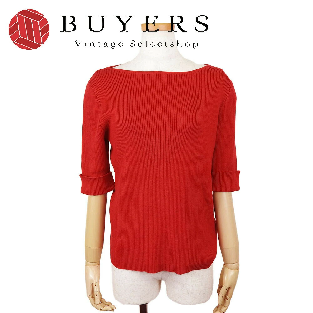品名【中古】 ラルフローレン ニット リブ 5分袖 M コットン レッド ローレン ボートネック レディース 女性 RALPH LAUREN