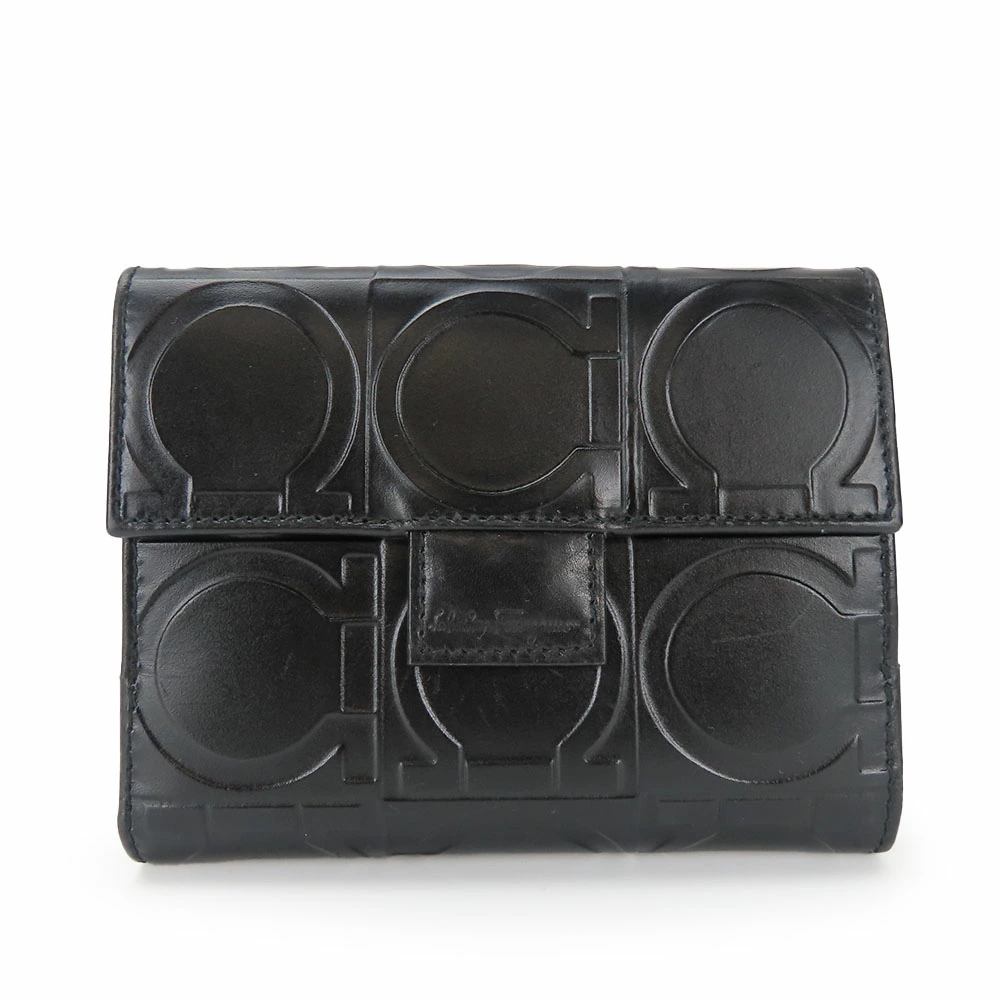 | 品名 | 【中古】 サルヴァトーレフェラガモ 二つ折り財布 AQ-22 0791 ガンチーニ レザー ブラック シルバー金具 Wホック 普段使い レディース 女性 Salvatore Ferragamo |