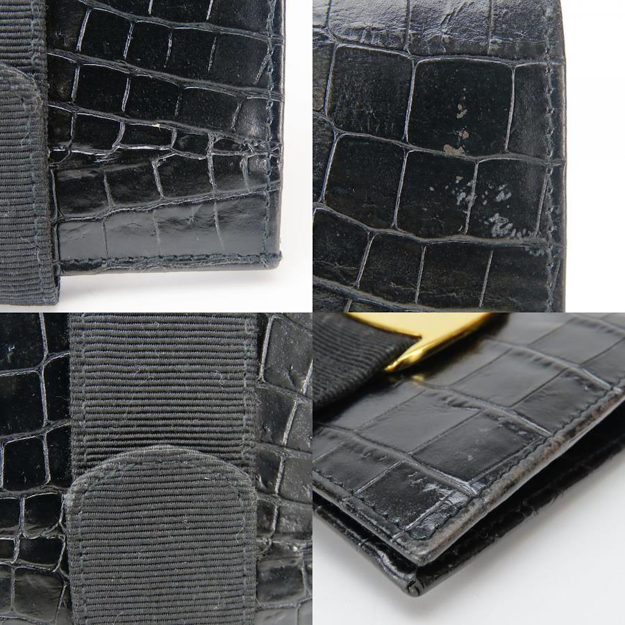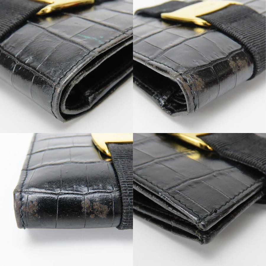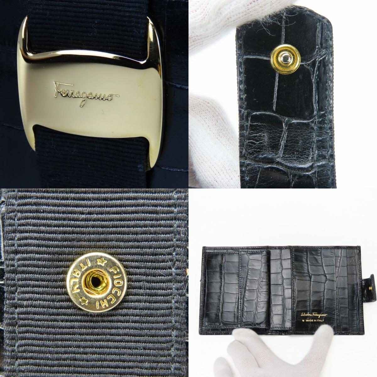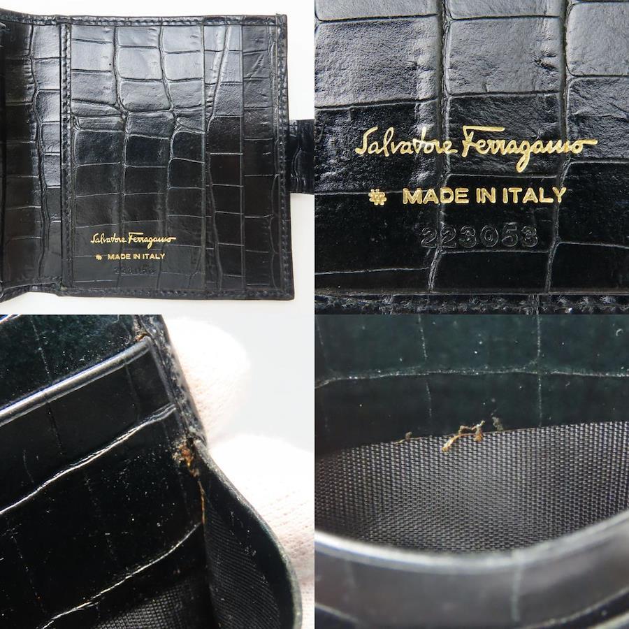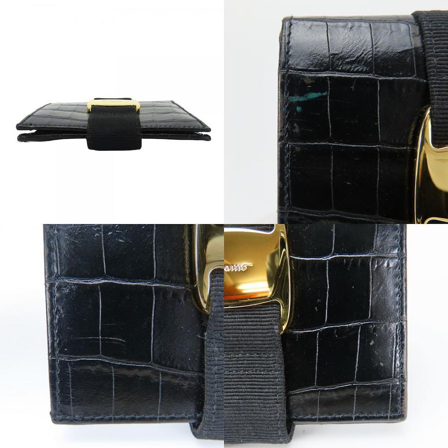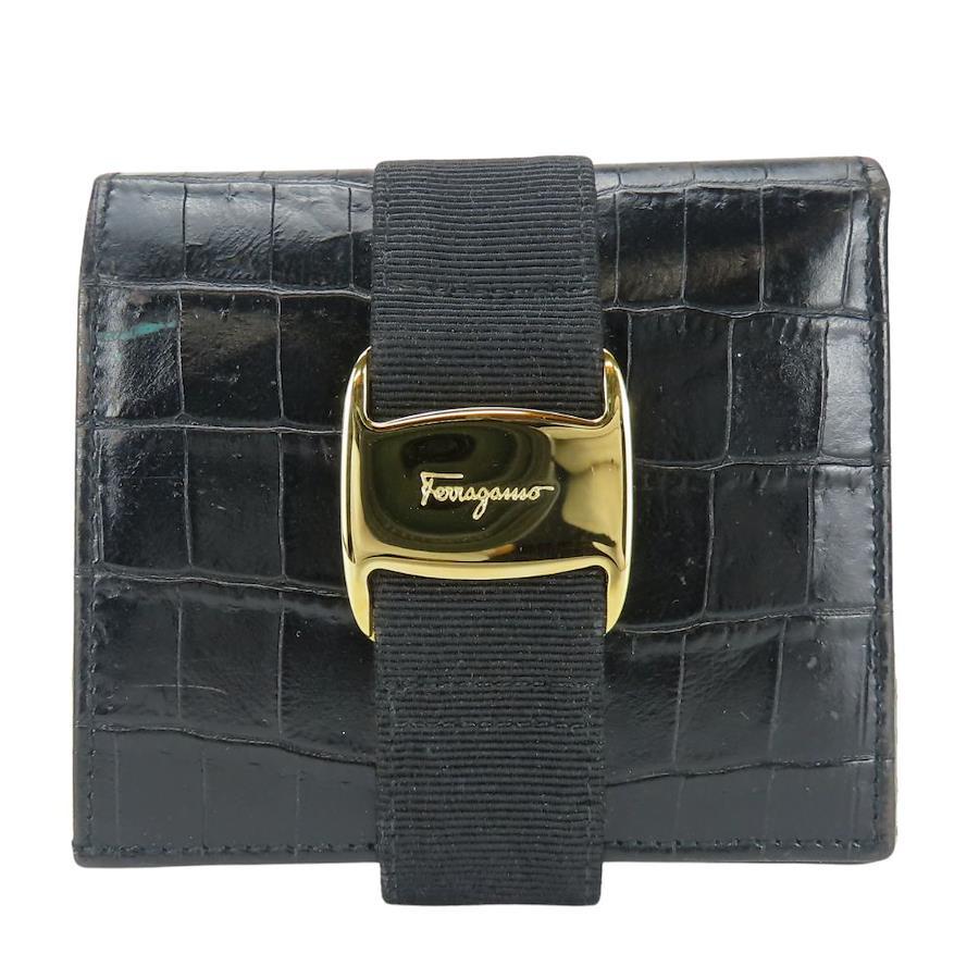 | 品名 | 【中古】 サルヴァトーレフェラガモ 二つ折り財布 223053 ヴァラ レザー ブラック ゴールド金具 クロコ調型押し コンパクト 小物 レディース 女性 Salvatore Ferragamo |