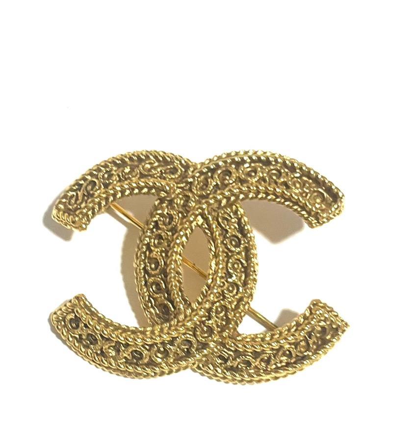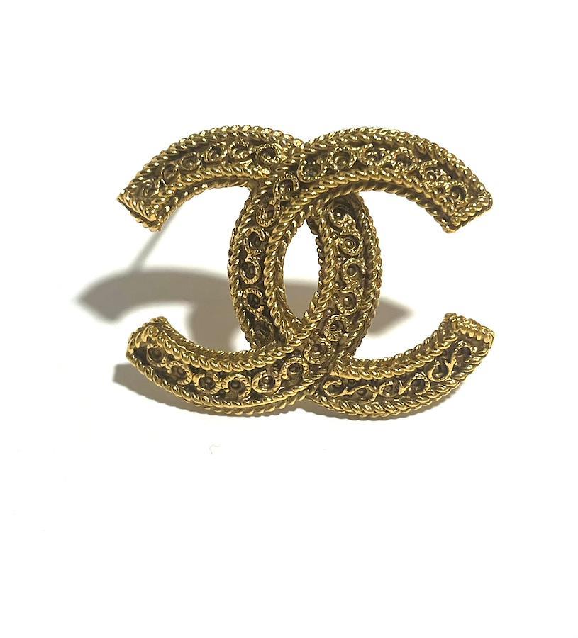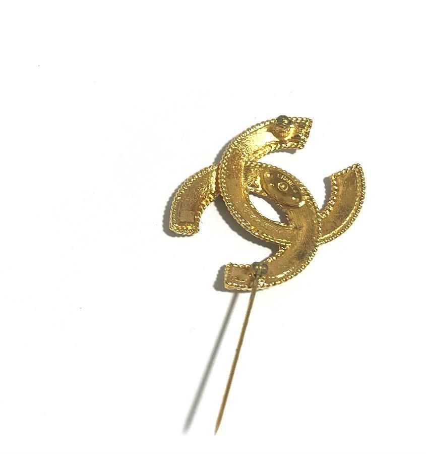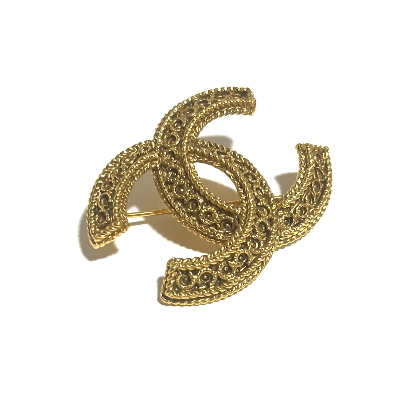 このブローチの形状は、シャネルの象徴であるCCロゴがメインのデザインです。
