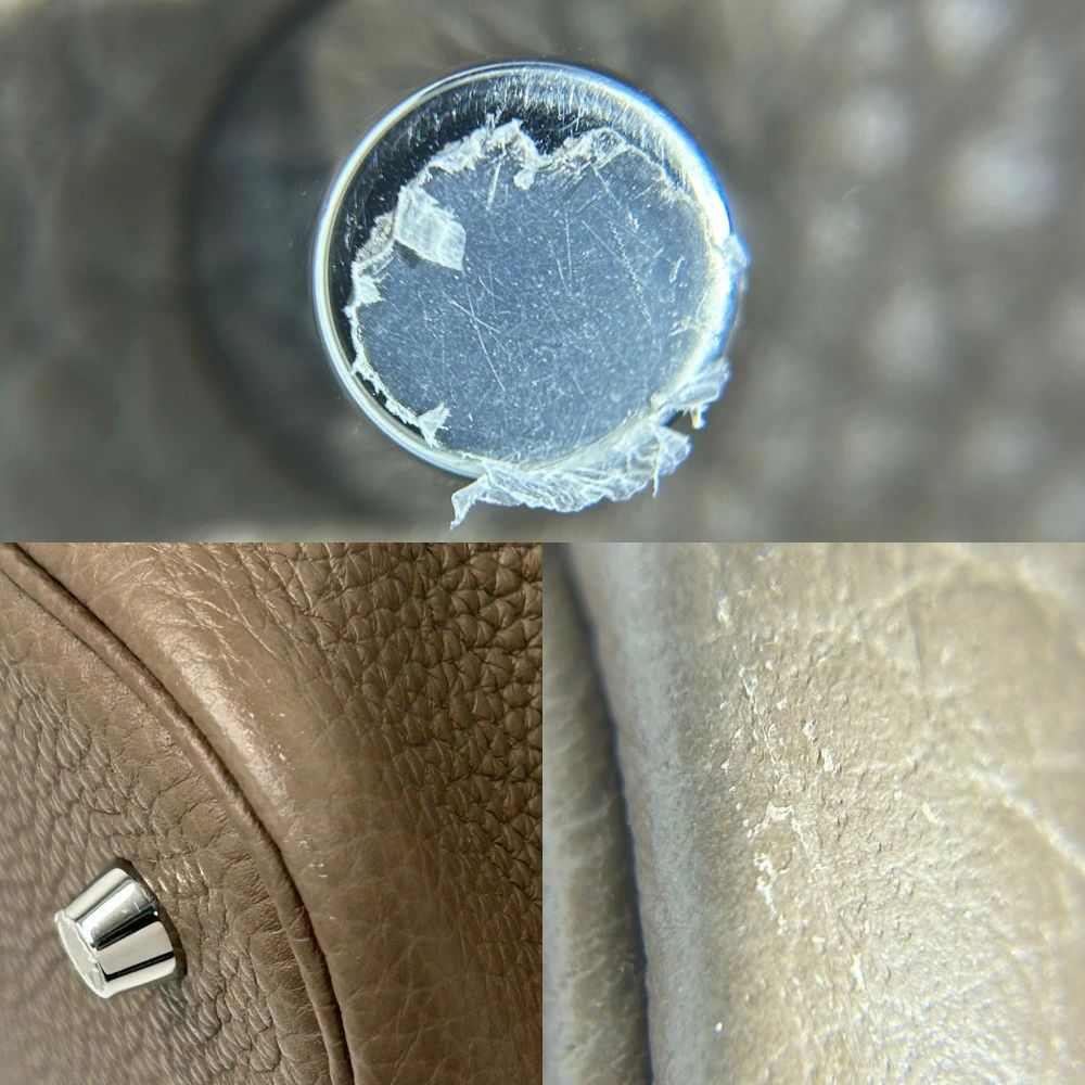 | コメント | ・外側に型崩れ ・角にスレ ・内側にスレ ・金具に小キズ ・持ち手縫い目に薄汚れ |