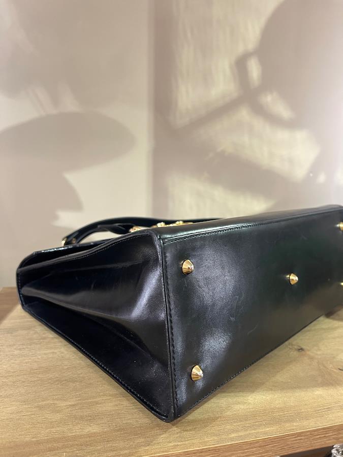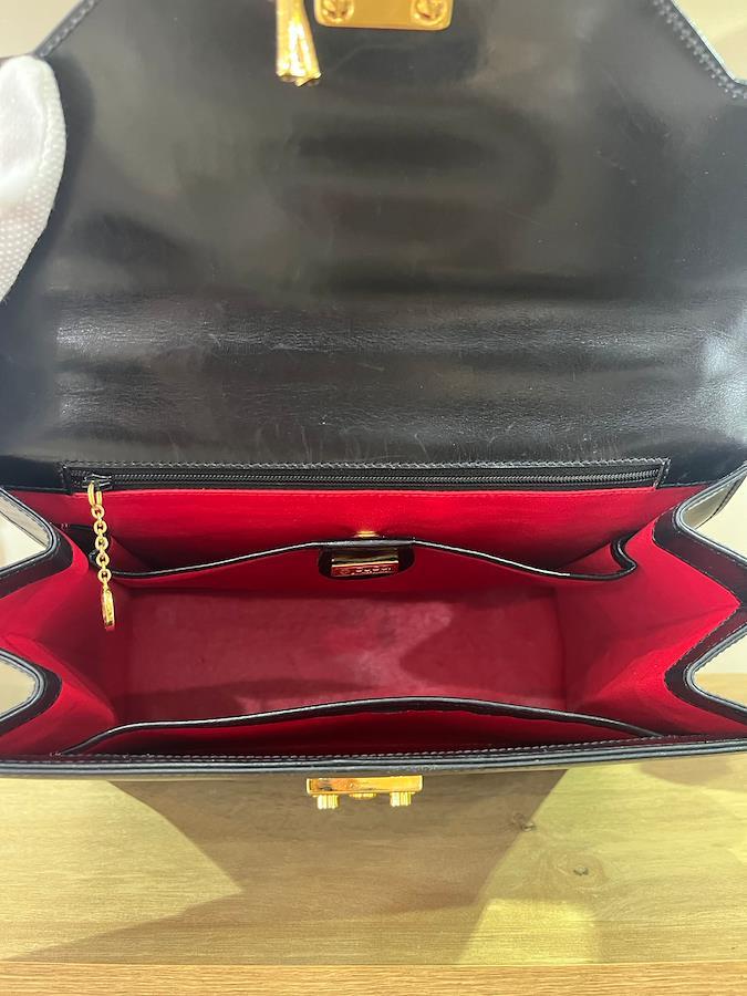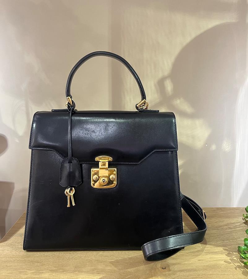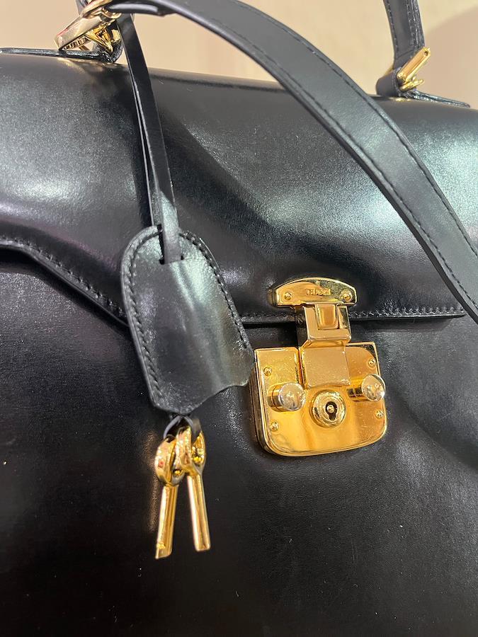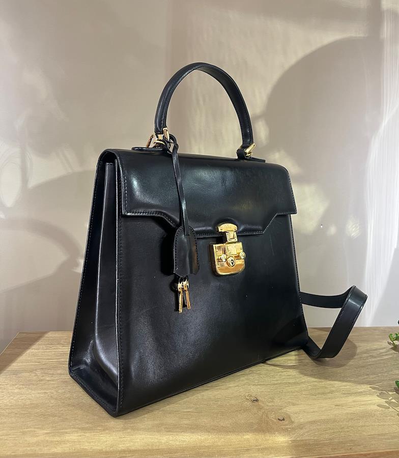 GUCCI グッチ ヴィンテージ 2WAY ハンドバッグ ゴールド金具 鍵付き ブラックレザー