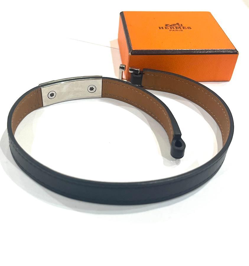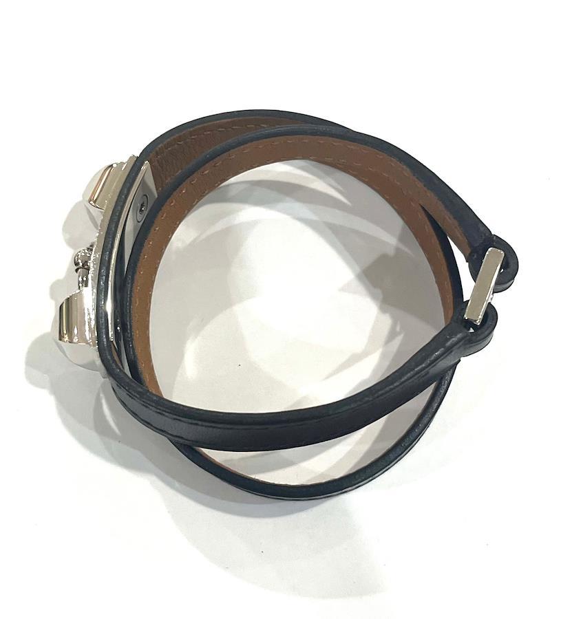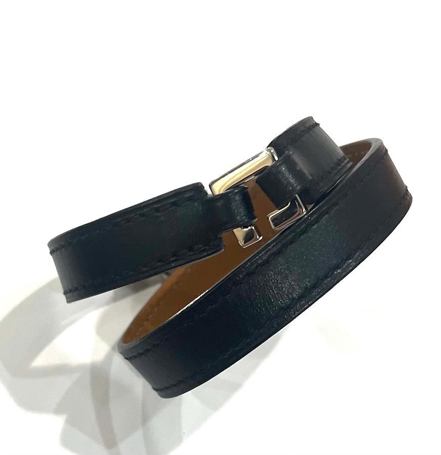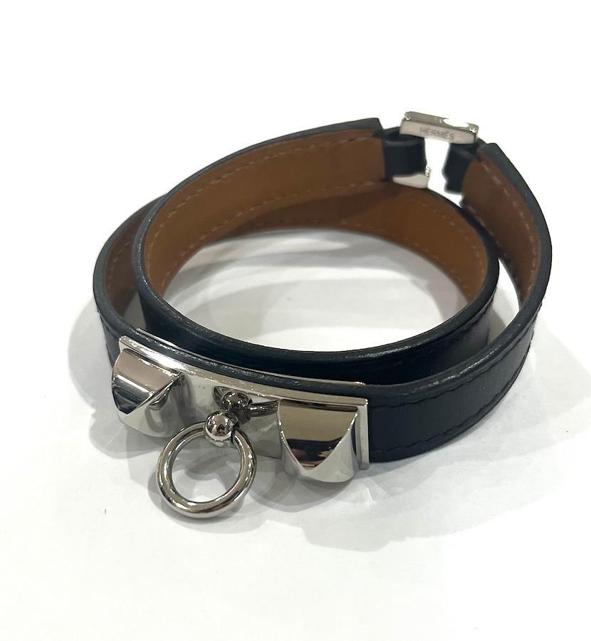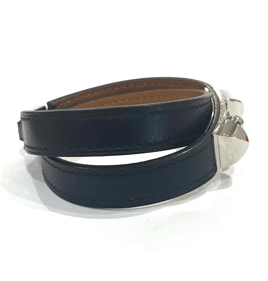 HERMÈS エルメス コリエ・ド・シアン ドゥブルトゥール ブレスレット 35cm レザー ブラック × シルバー金具