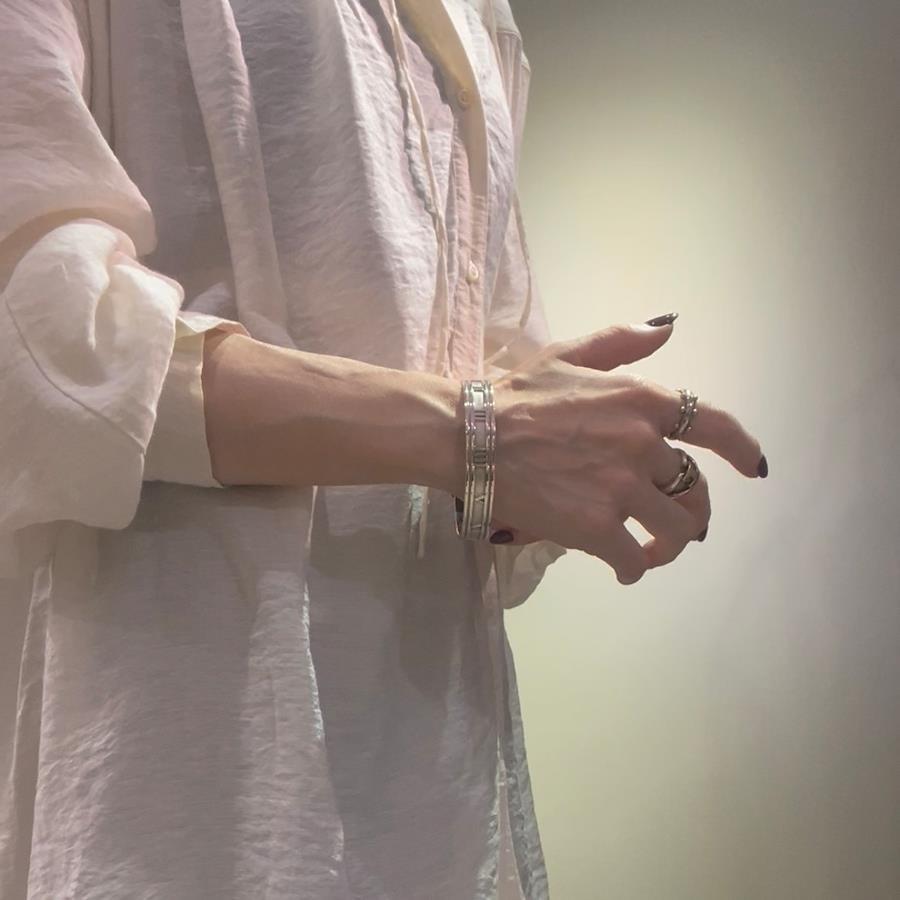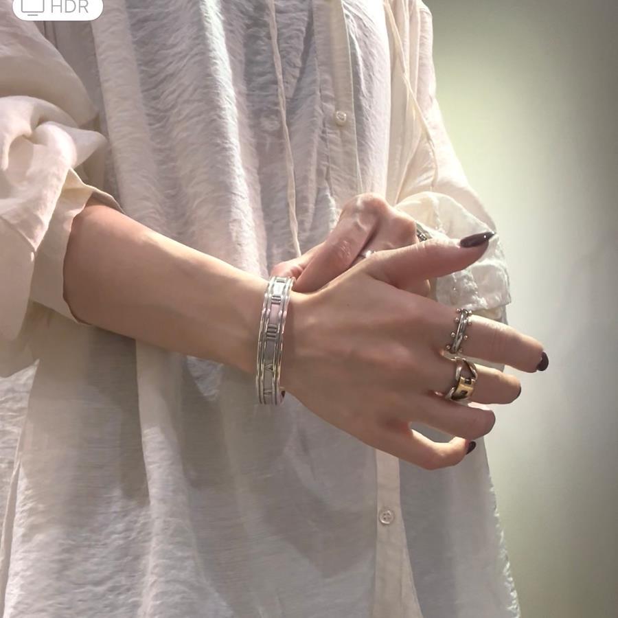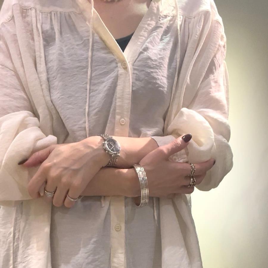 • 単体でも重ねづけでも映えるボリューム感で、ユニセックスに着用可。