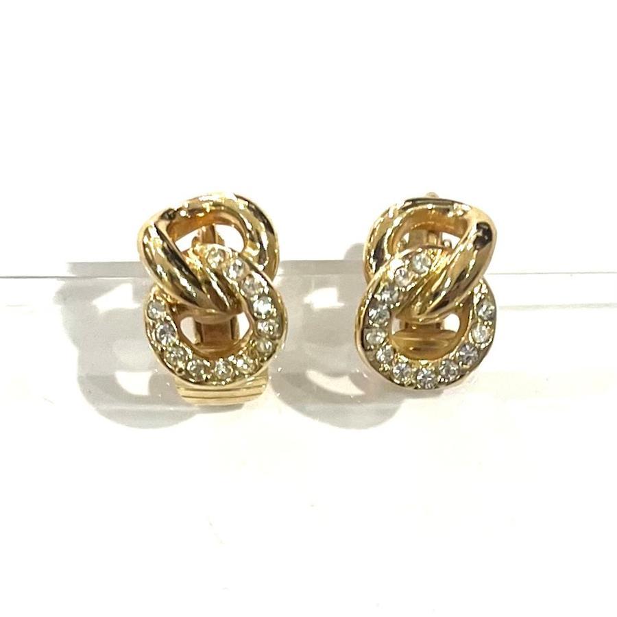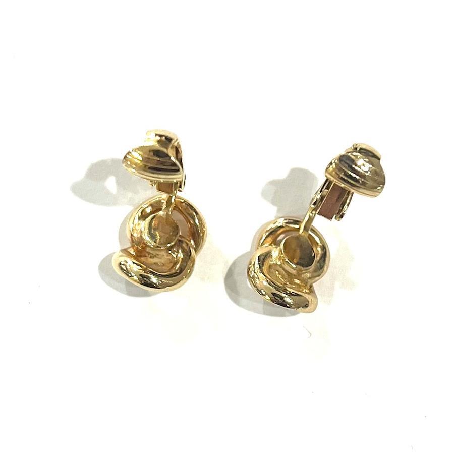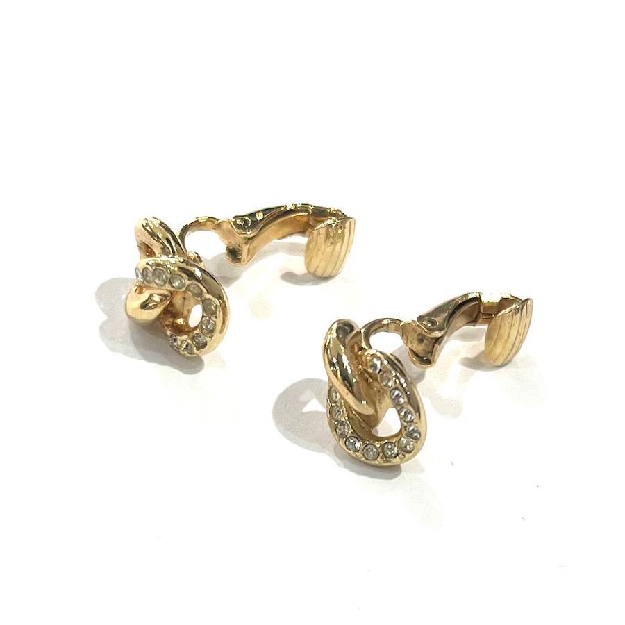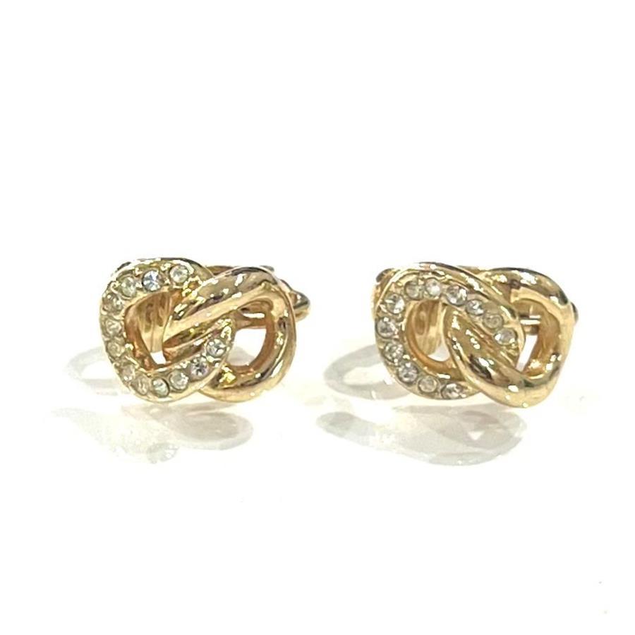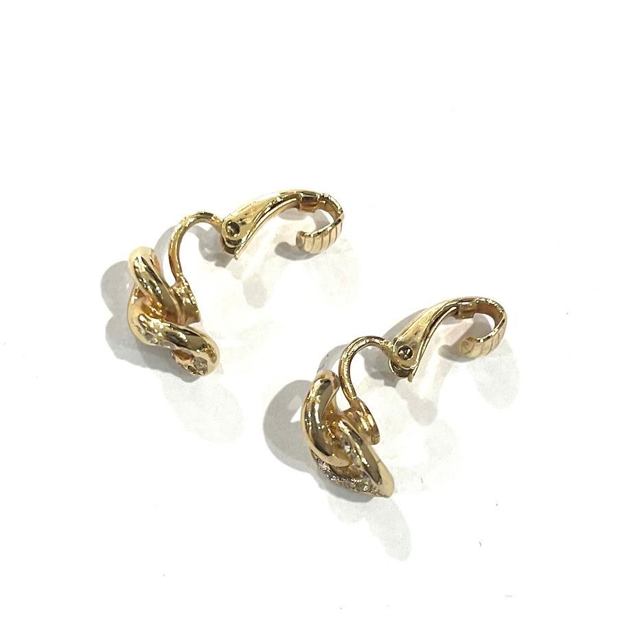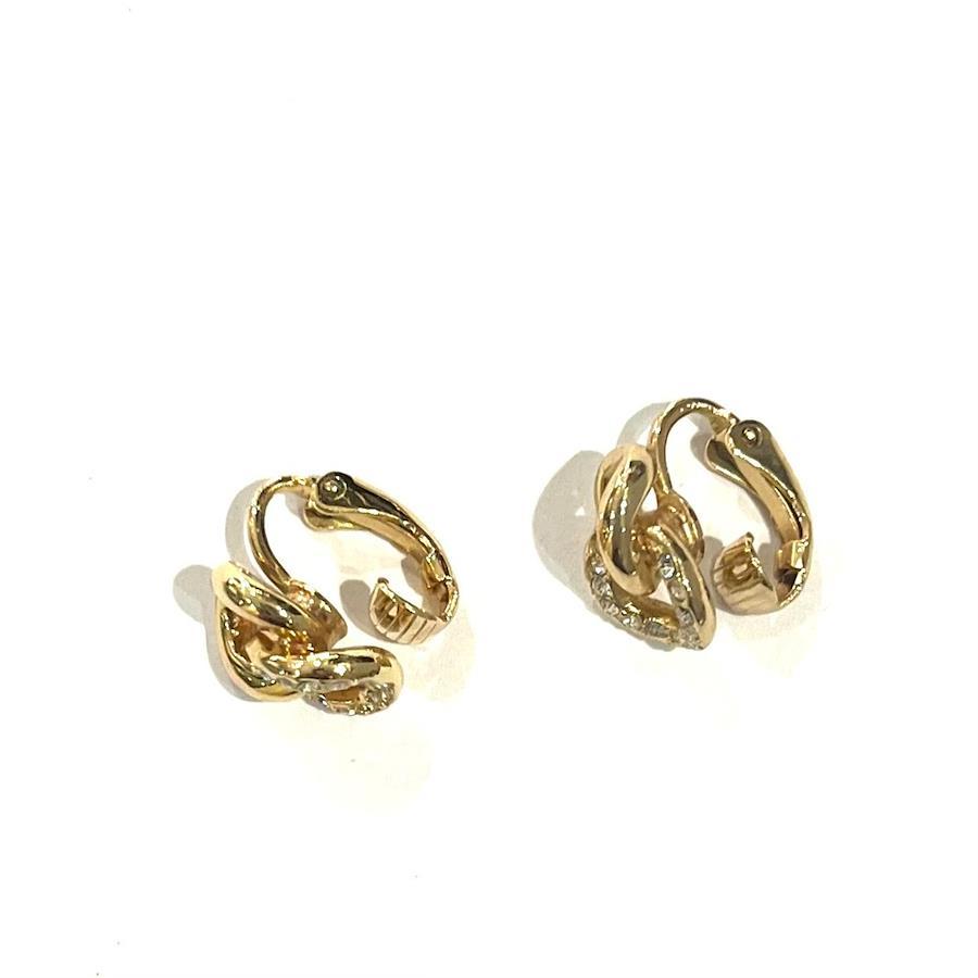 本作は、そのDNAを受け継ぐ1980〜90年代制作のヴィンテージイヤリング。ゴールドトーンのメタルをやわらかくツイストさせ、片側にクリスタルをきらりとあしらったミニマルなデザインです。サイズは縦約1.3cm×横約1.0cm。耳たぶにそっと沿う小ぶり感で、日常にもフォーマルにも溶け込みます。