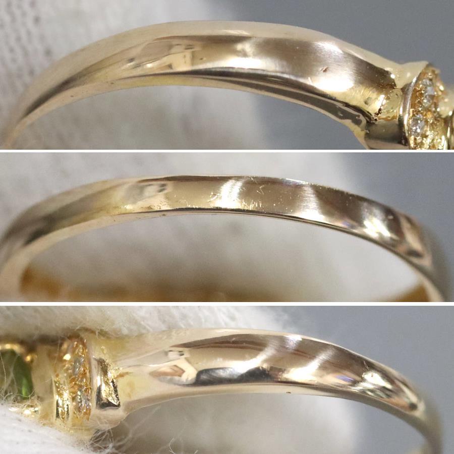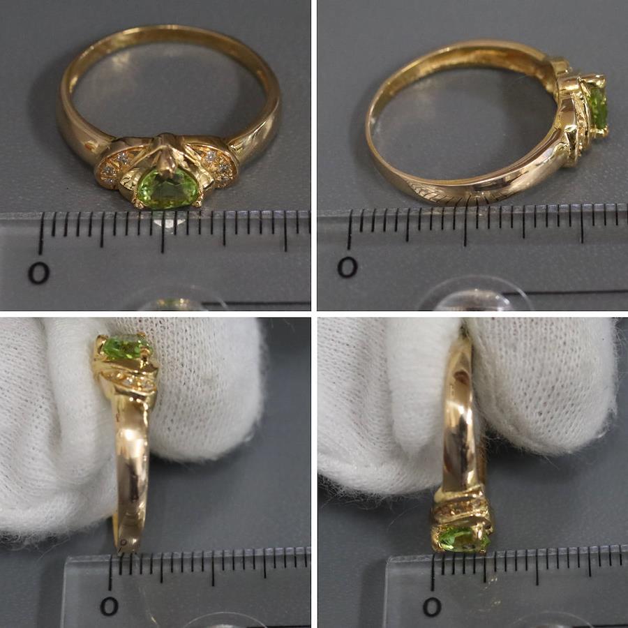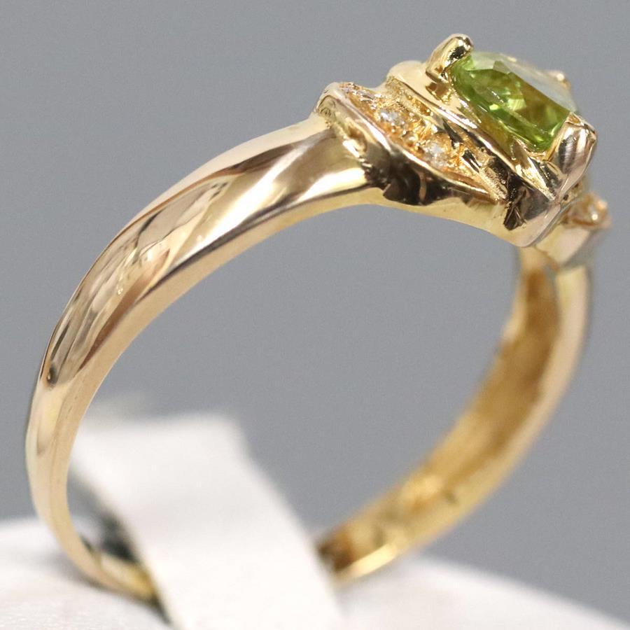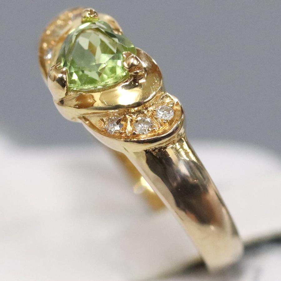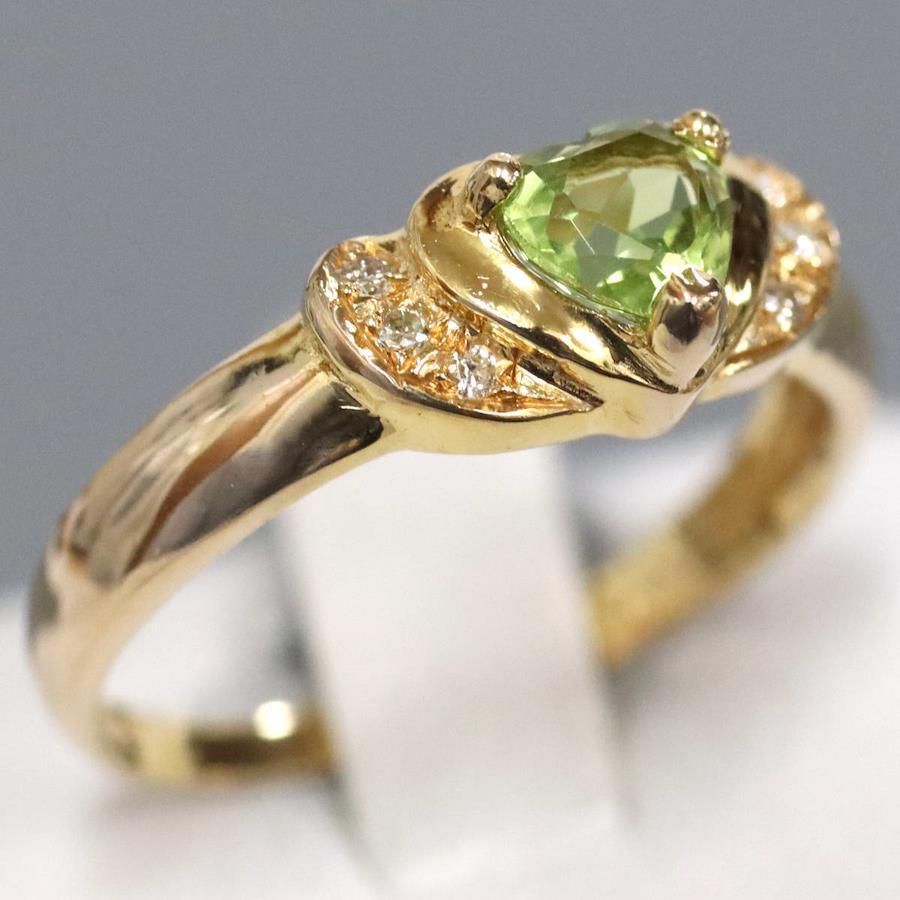18K/750ペリドットダイヤモンドリングの中古品です。ハート型のペリドットがセットされた可愛らしいデザインです。ペリドット、ダイヤモンド共に石目の刻印はありません。ペリドットは黄緑色で、インクルージョンが少なく照りがあります。地金には小傷があります。+---+---+---+---+---+。{状態}AB{素材}18K/750(YG),ペリドット,ダイヤモンド{サイズ}当店計測約#13{リング幅}約1-6mm。{その他}2.7g。{付属品}なし(サービス箱をお付けします){お問合せ商品番号}25086030+---+---+---+---+---+。
