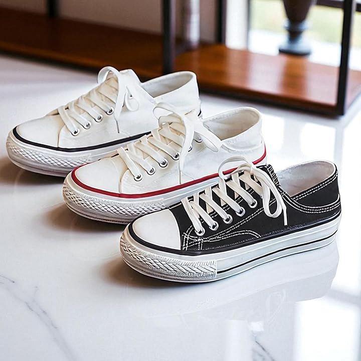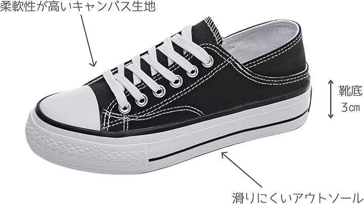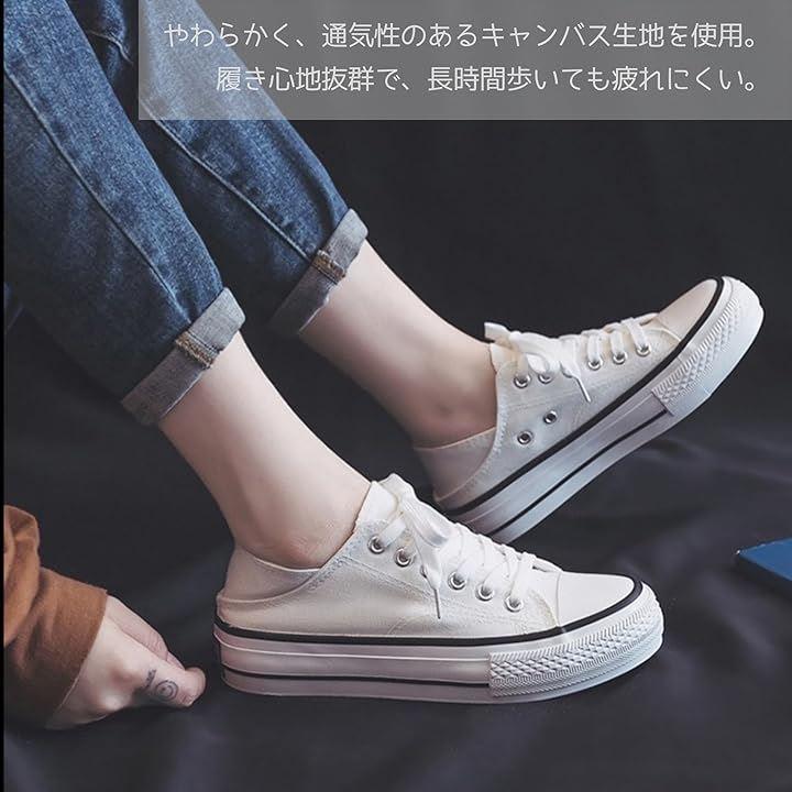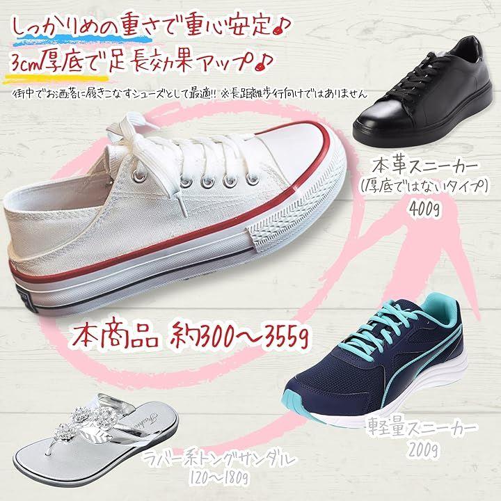 長時間歩いても疲れにくい厚底 3cmのキャンバススニーカー。
