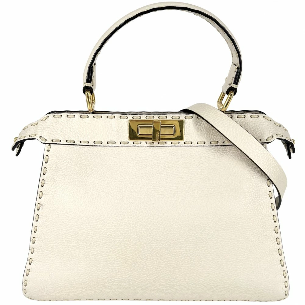 [20% OFF] Fendi Women's 2-Way Peekaboo ISeeU Medium Handbag/Shoulder Bag, ISeeU Selleria, White, FENDI 8BN321, Ivory Leather with Gold Hardware [Pre-owned]