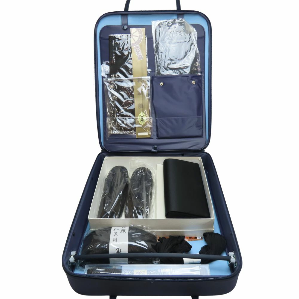 | 品名 | 【中古】 和装バッグ 小物8点セット 着物持ち運び用 喪服用 ナイロン レーヨン 絹 など 紺 黒 着物一式収納 縦型 自立型 レディース 女性 |