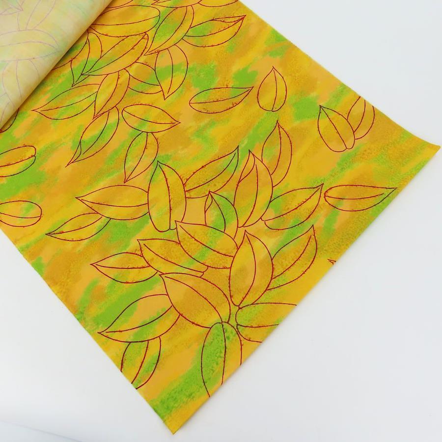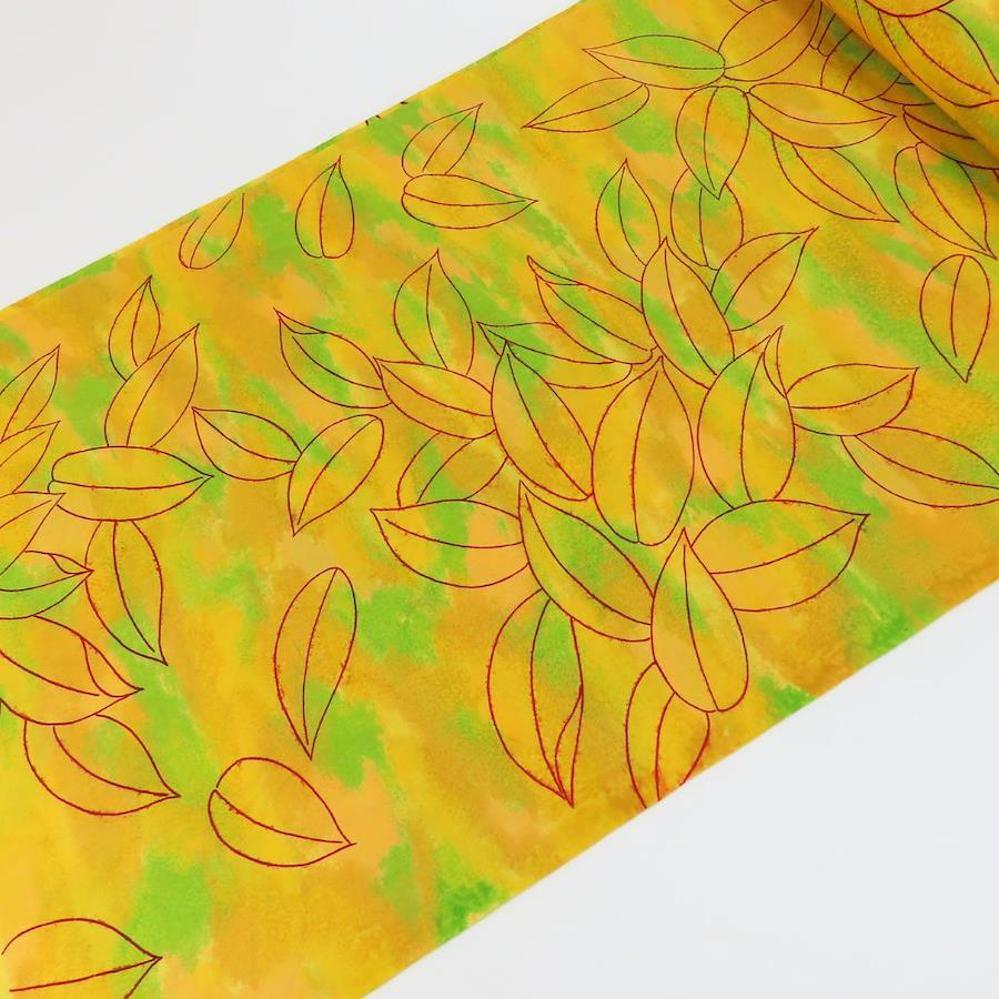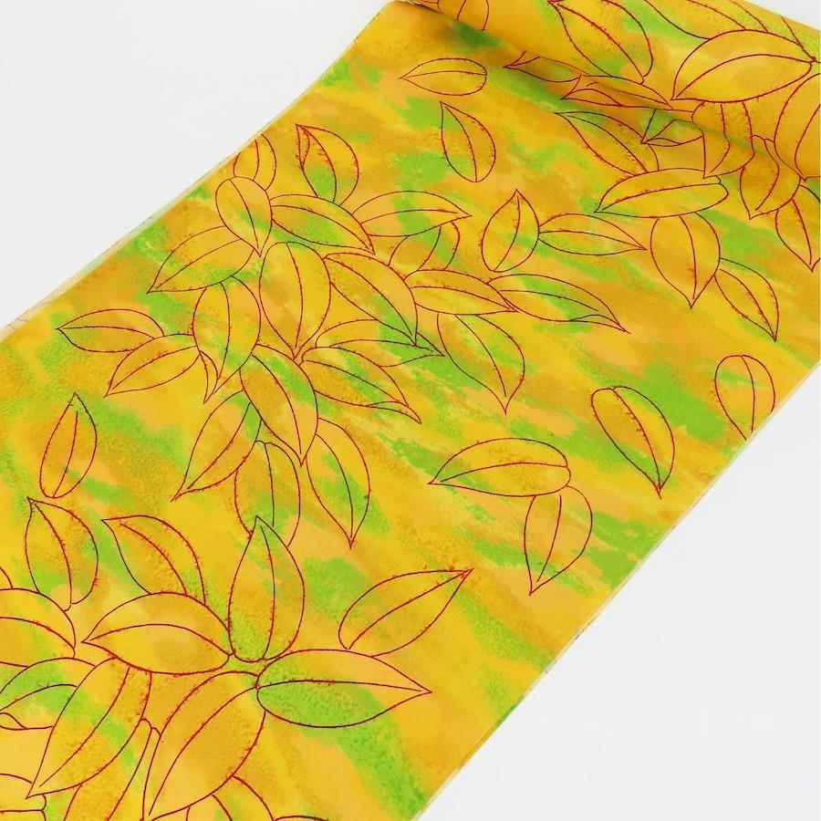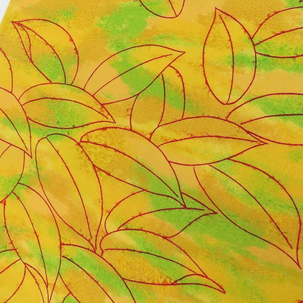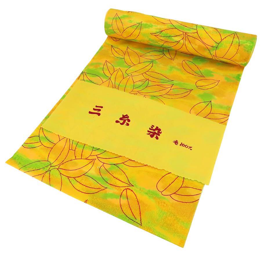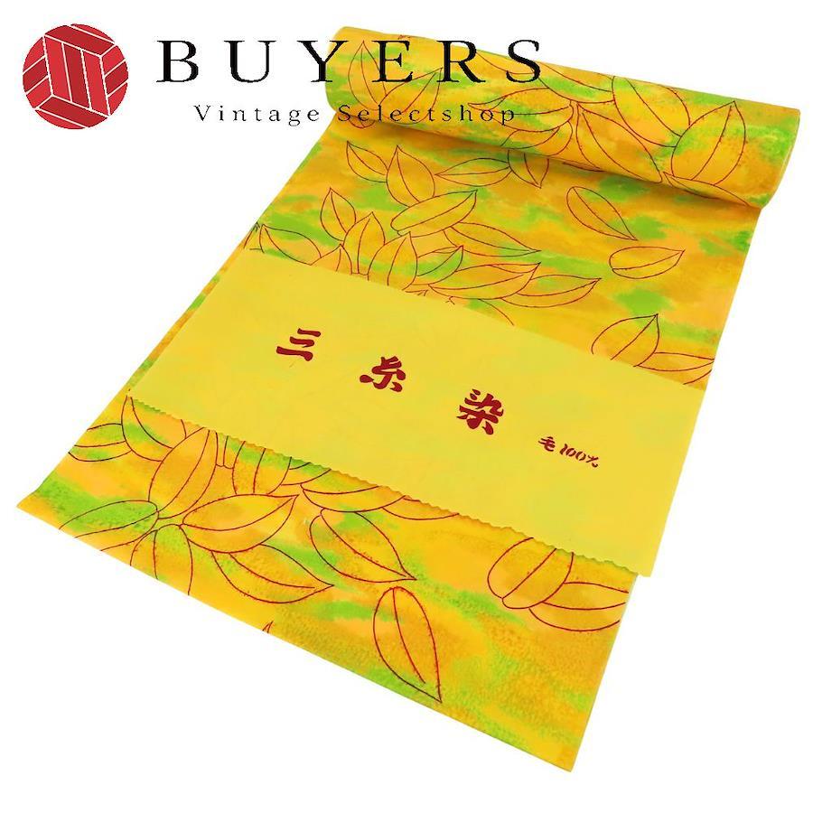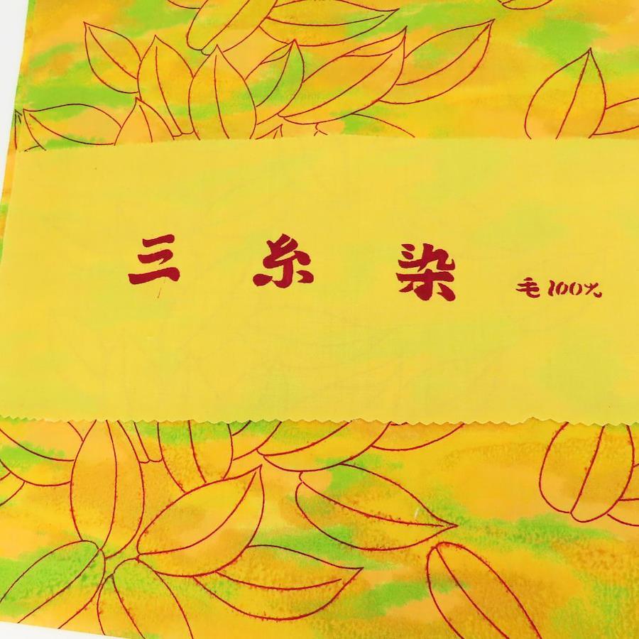| 品名 | 【中古】 反物 着尺 ウール イエロー グリーン レッド 葉 三糸染 リメイク レディース 女性 |