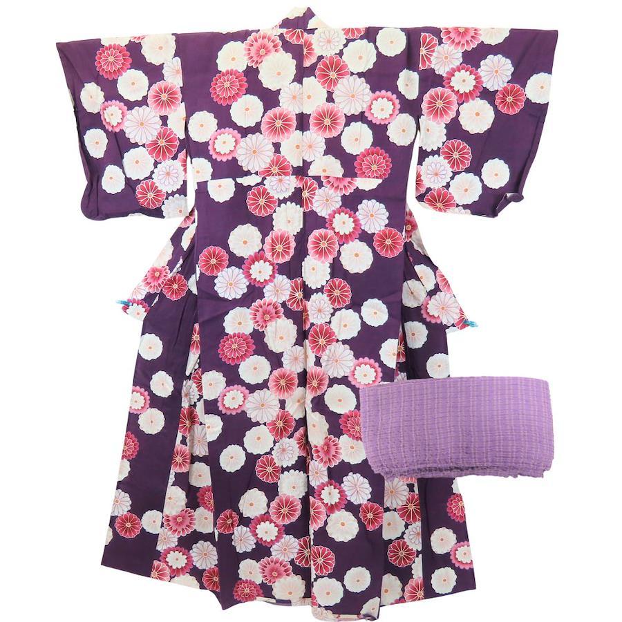 | 品名 | 【中古】 浴衣 2点セット 兵児帯 綿 ポリエステル 紫 マルチカラー 花 ふわふわ 可愛い レディース 女性 |