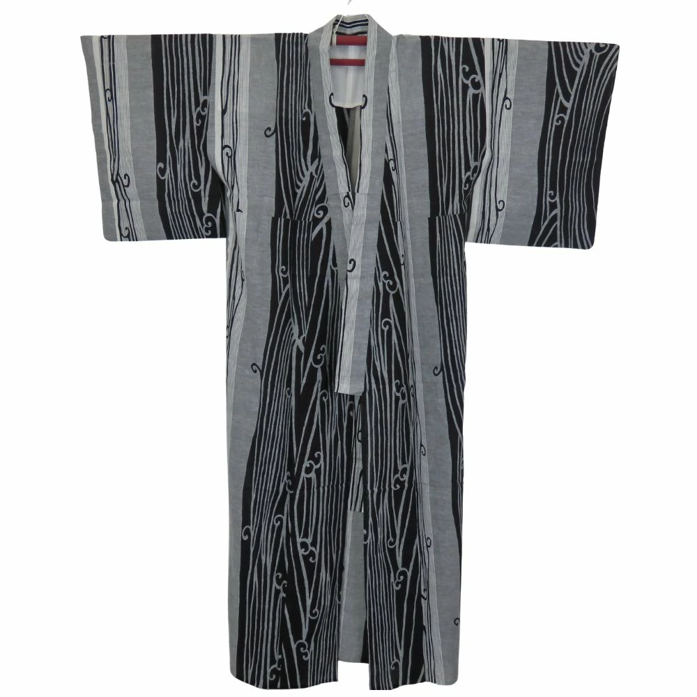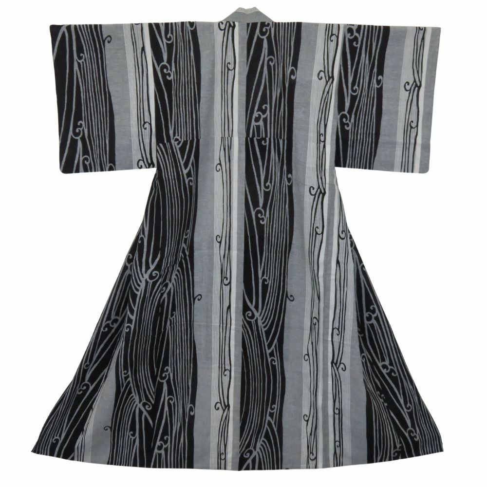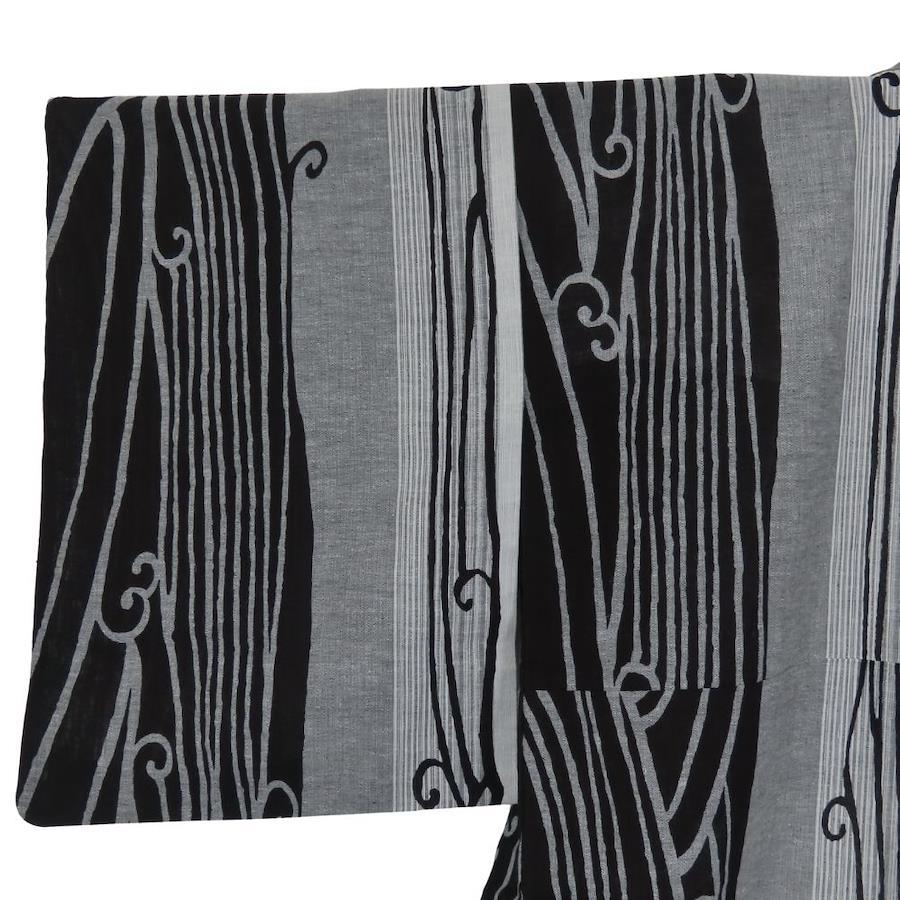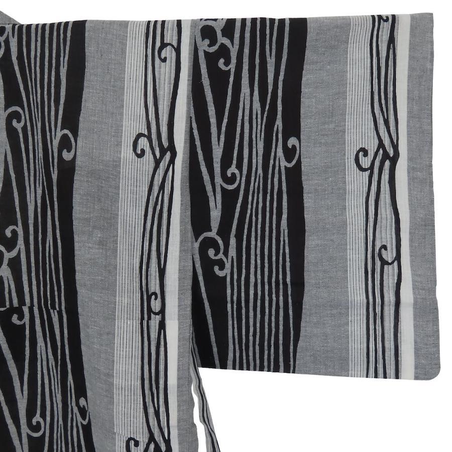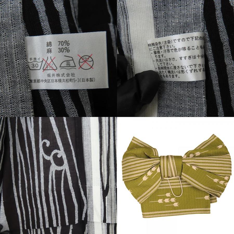 | 品名 | 【中古】 浴衣 2点セット 作り帯 綿麻 ポリエステル グレー グリーン ブラック ホワイト系 注染ゆかた 変わり生地 粋 レディース 女性 |