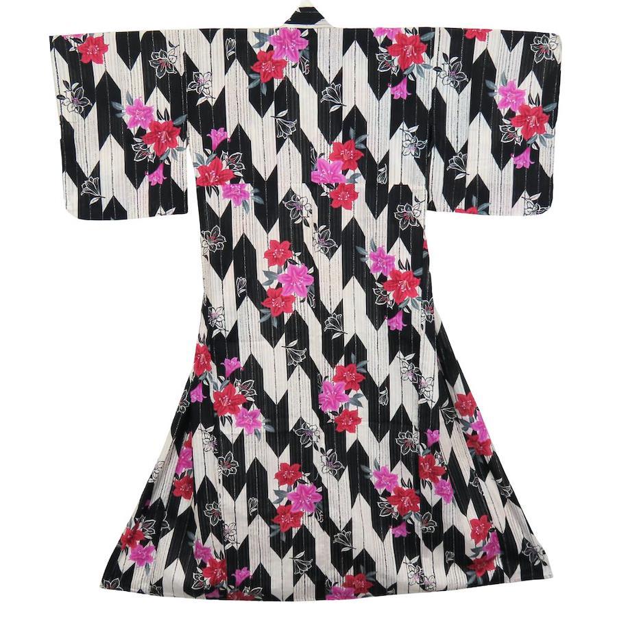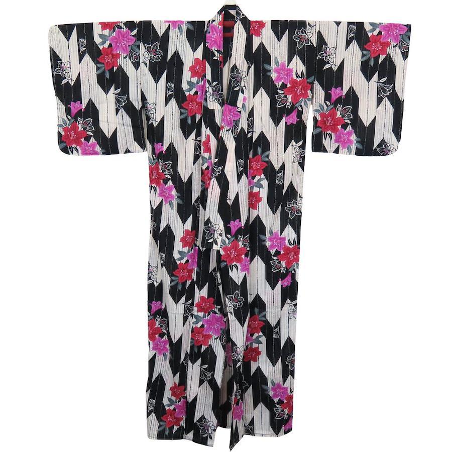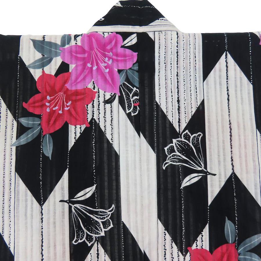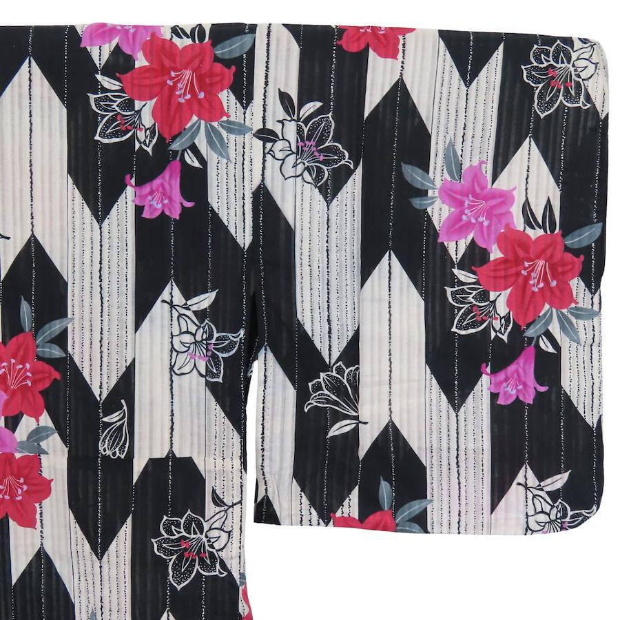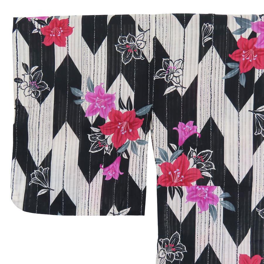 | 品名 | 【中古】 浴衣 2点セット 作り帯 綿 ポリエステル ホワイト ブラック ピンク系 変わり生地 おしゃれ レディース 女性 |