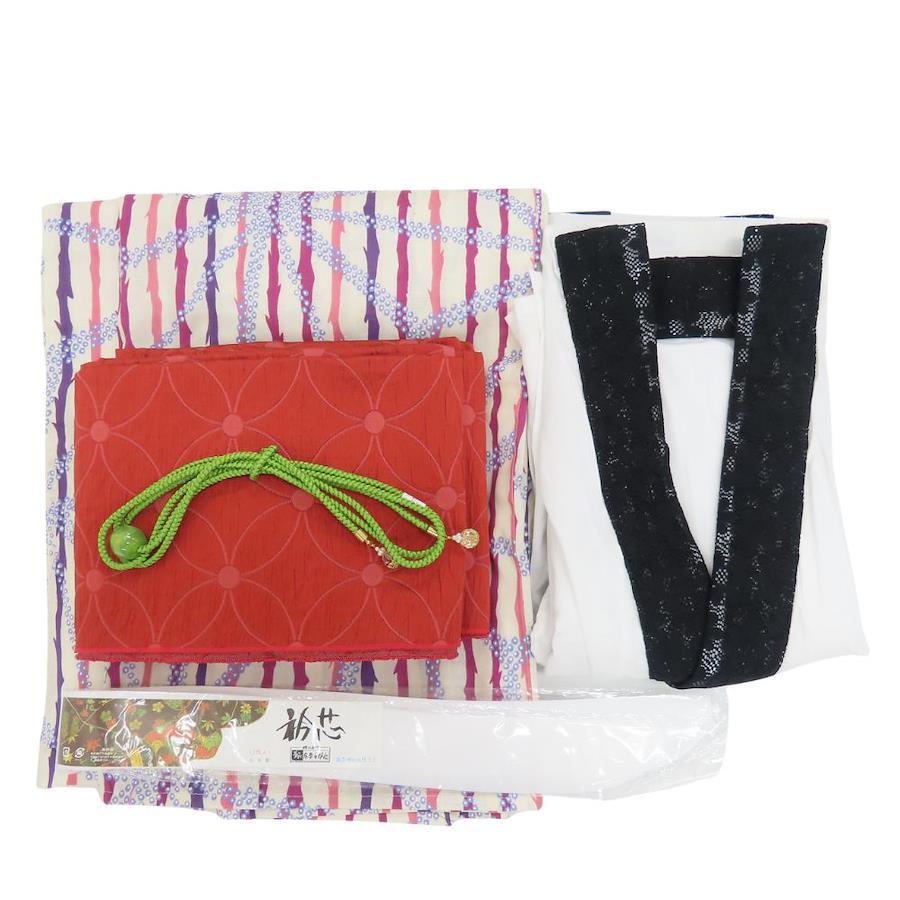 | 品名 | 【中古】 浴衣 5点セット 一式 綿 ポリエステル アイボリー ピンク系 帯締め 肌着 小物 レディース 女性 |