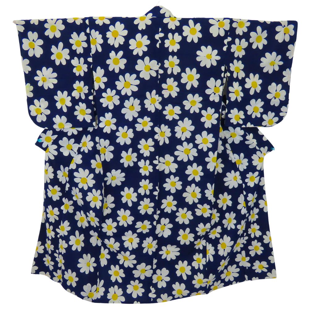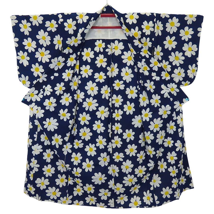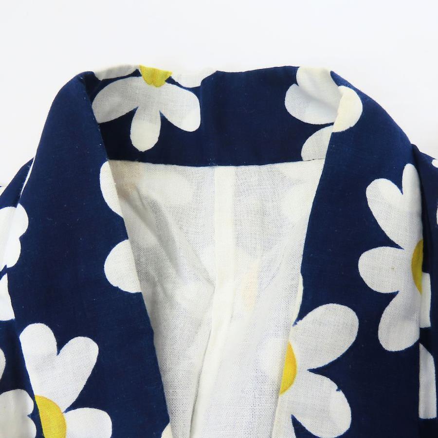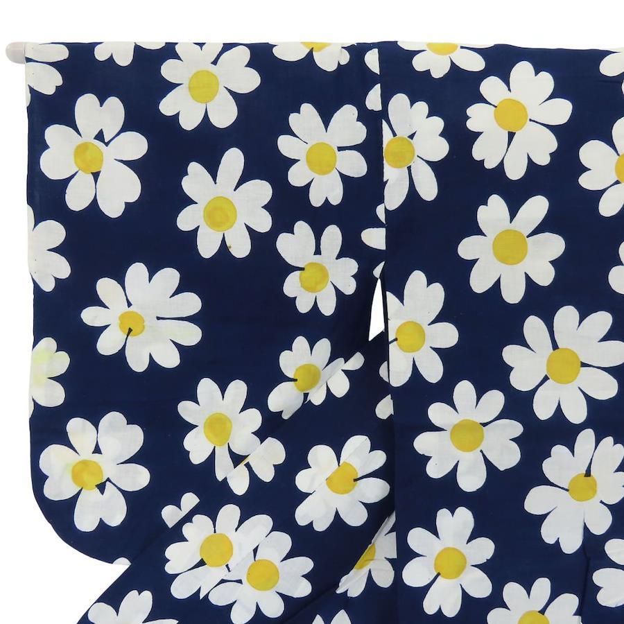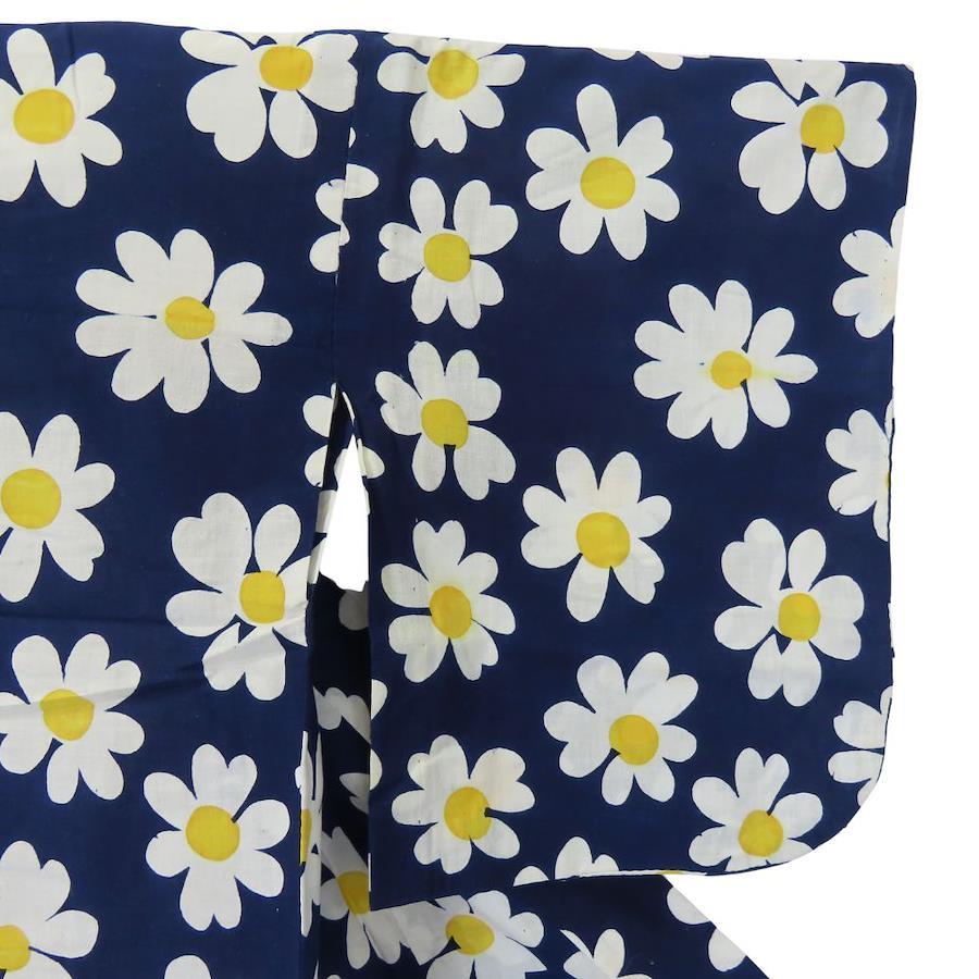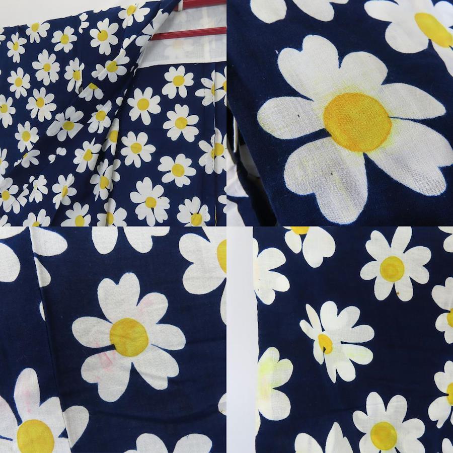 品名【中古】 浴衣 フラワー 綿 ネイビー ホワイト イエロー お洒落 可愛い レディース 女性