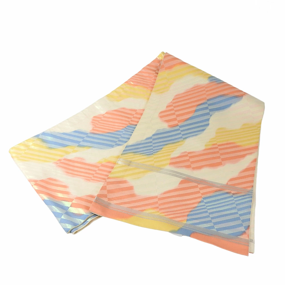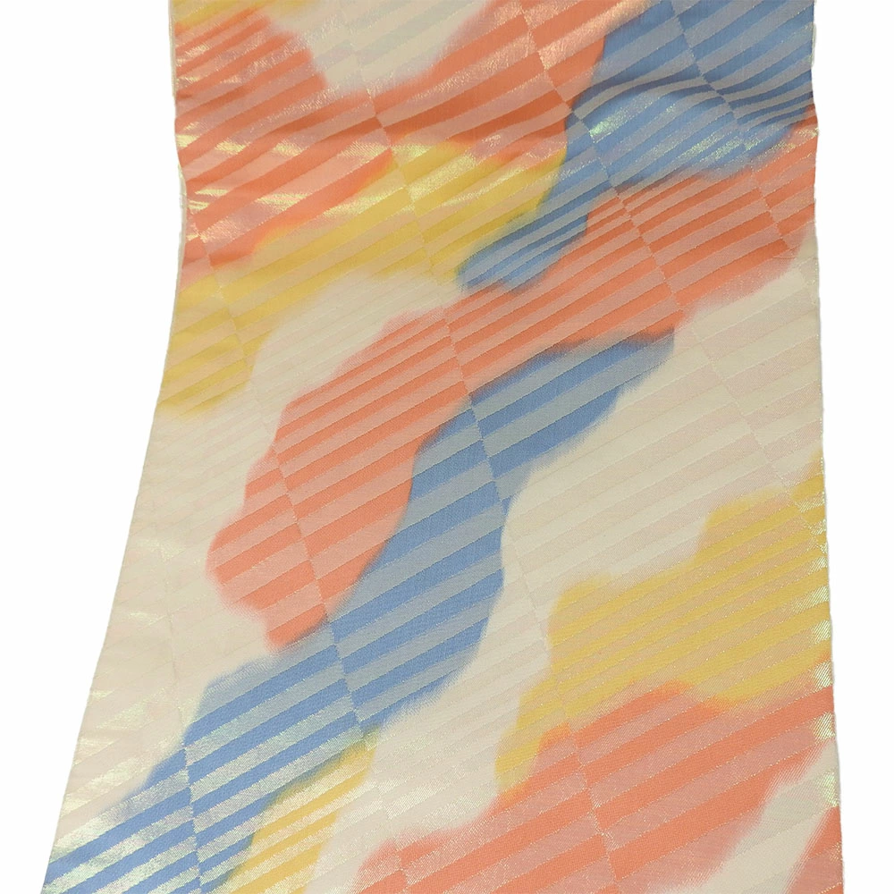 | 品名 | 【中古】 袋帯 踊り用 舞台用 正絹(金銀糸除く) オフホワイト ピンク イエロー ブルー ボカシ レディース 女性 |