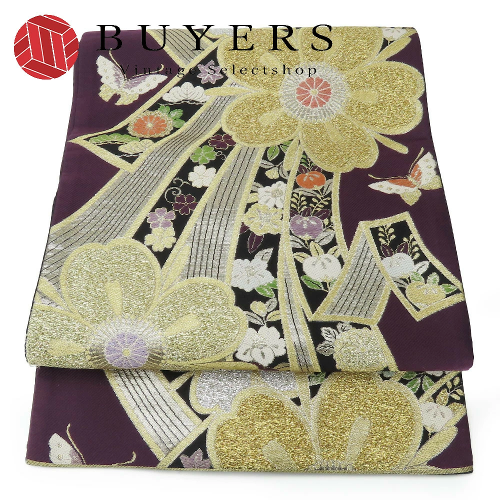 | 品名 | 【中古】 袋帯 正絹(金銀糸除く) パープル ゴールド ブラック 振袖 訪問着 レディース 女性 |
