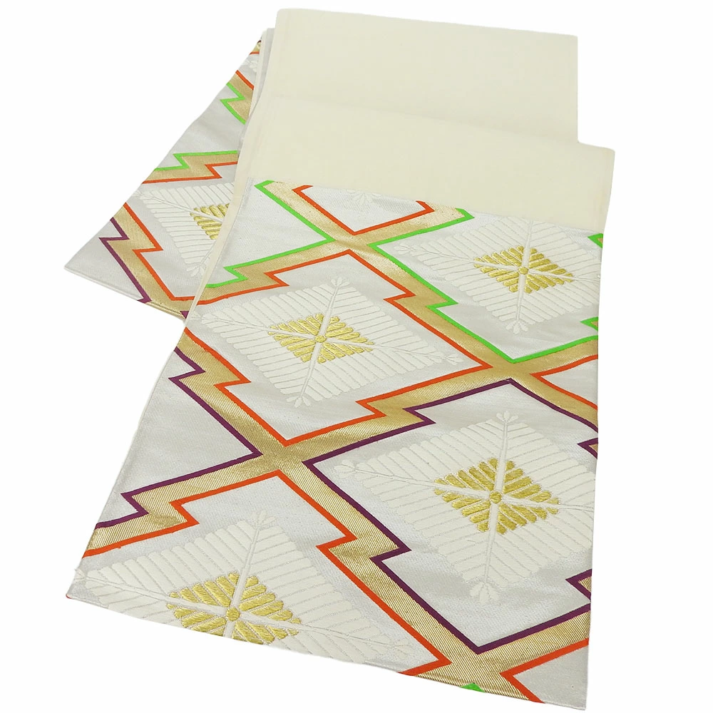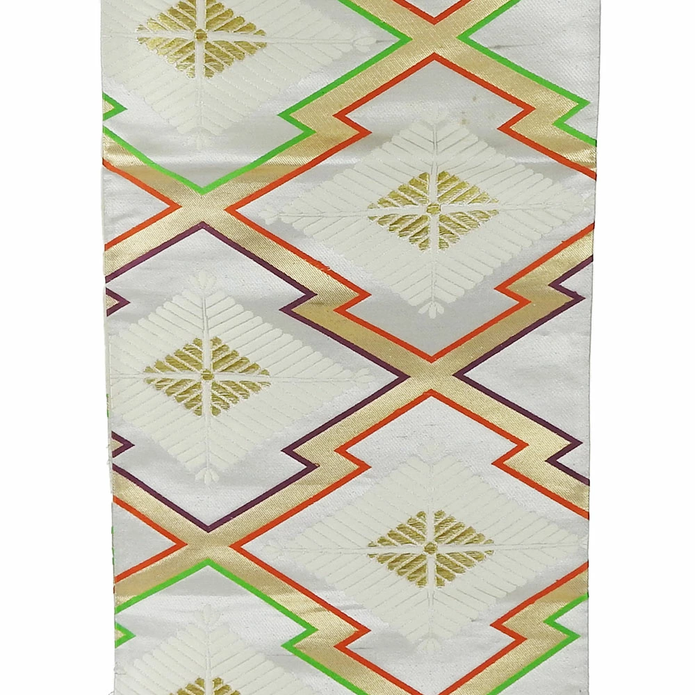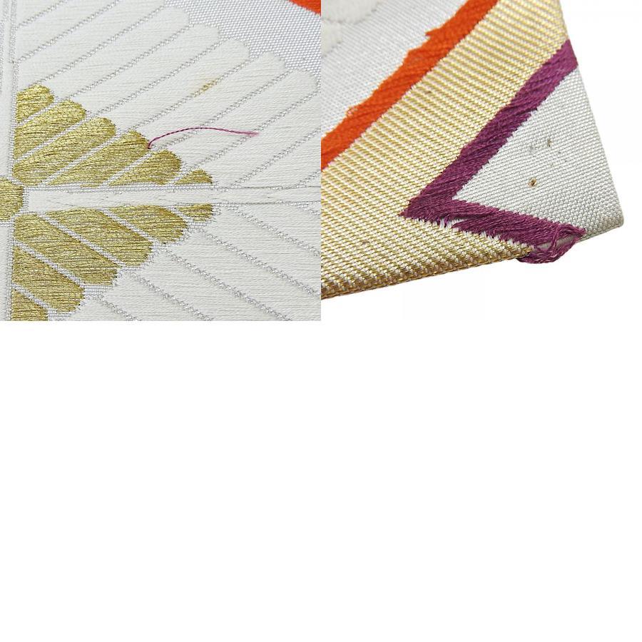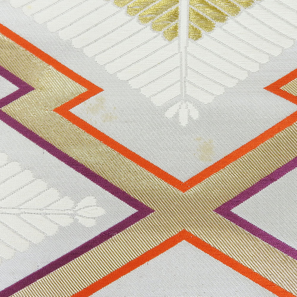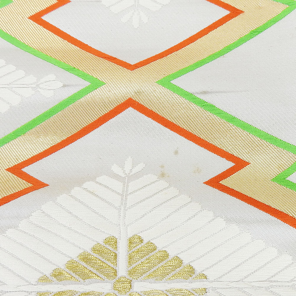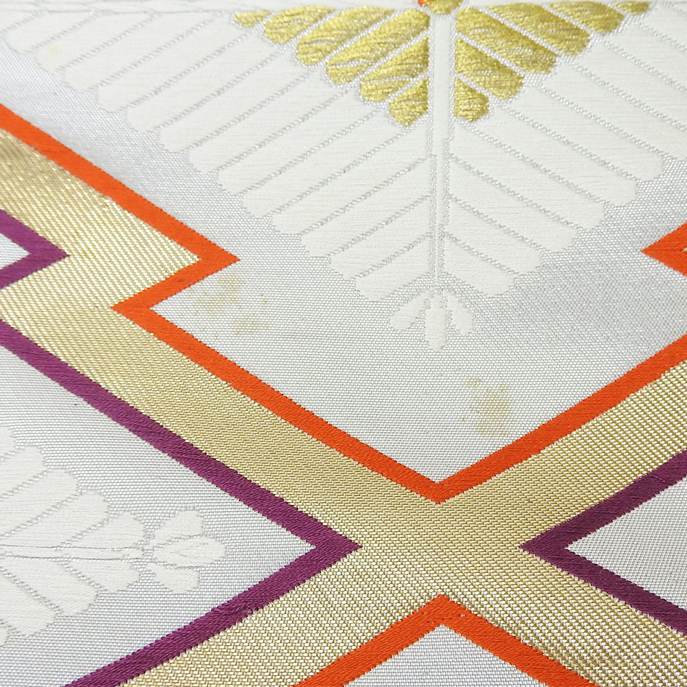 | 品名 | 【中古】袋帯 古典柄 銀地 ゴールド アイボリー 振袖用 六通柄 成人式 正絹 シルク 呉服 着物 |