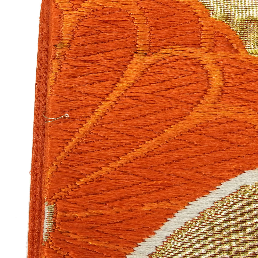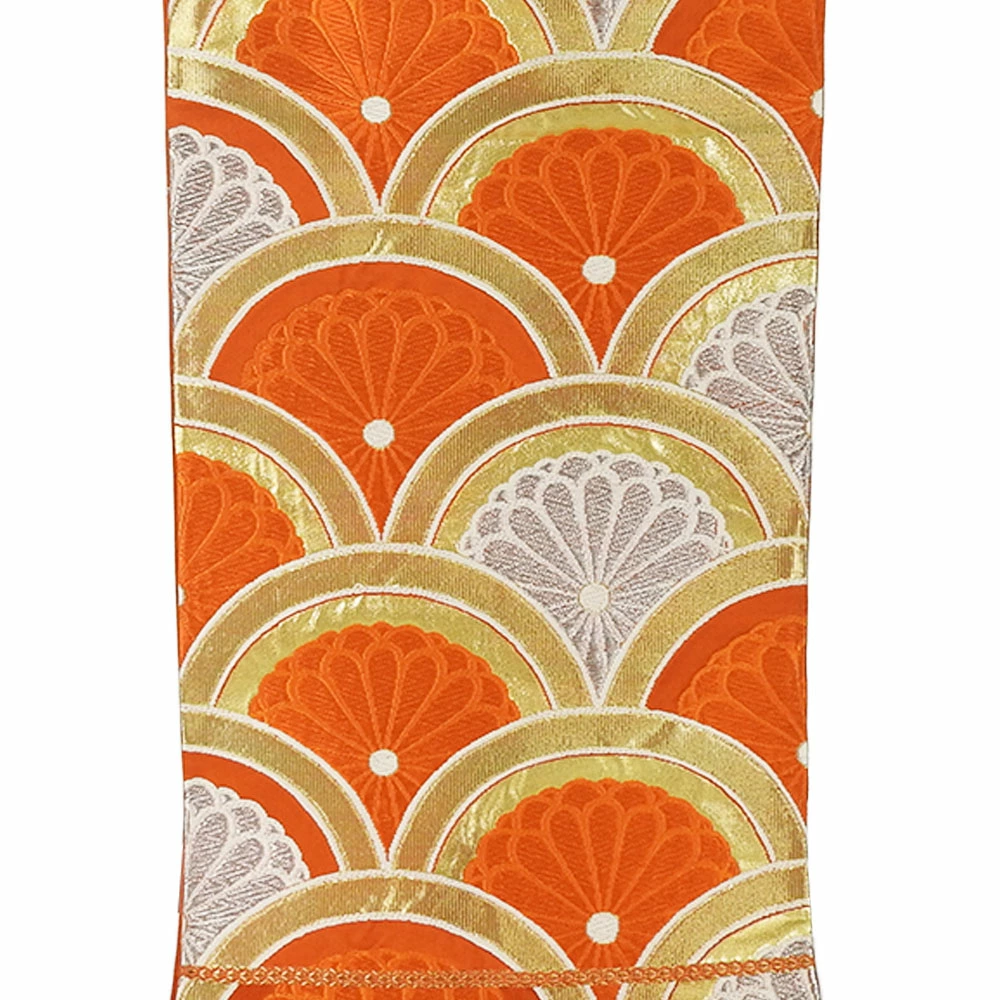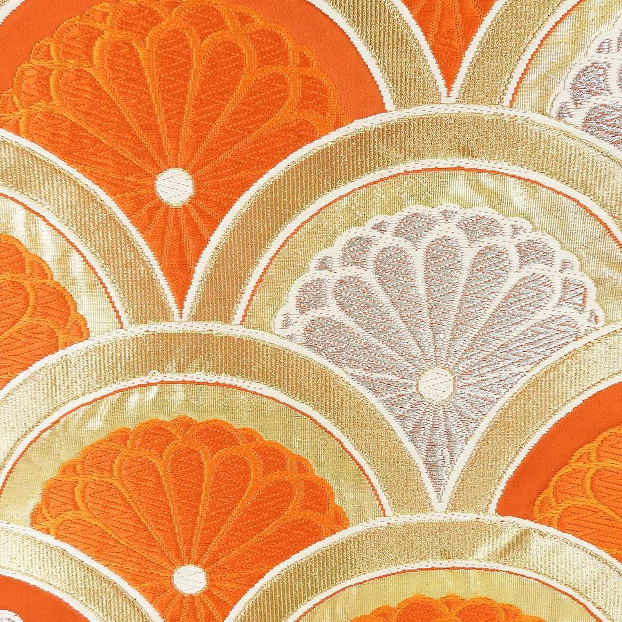 | 品名 | 【中古】袋帯 青海波 菊 オレンジ地 シルバー ゴールド 振袖用 成人式 正絹 シルク 刺繍 レディース 女性 和装 呉服 着物 |