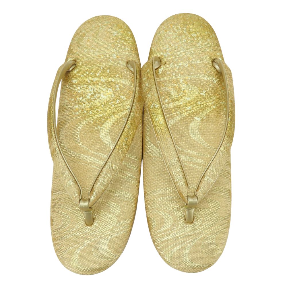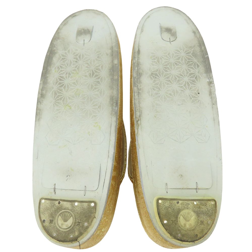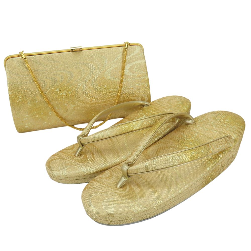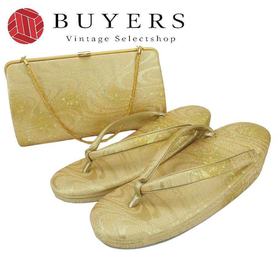 | 品名 | 【中古】 和装バッグ 草履バッグセット 流水模様 箔 正絹(金銀糸除く) 合成皮革 ゴールド ゴールド金具 レディース 女性 |