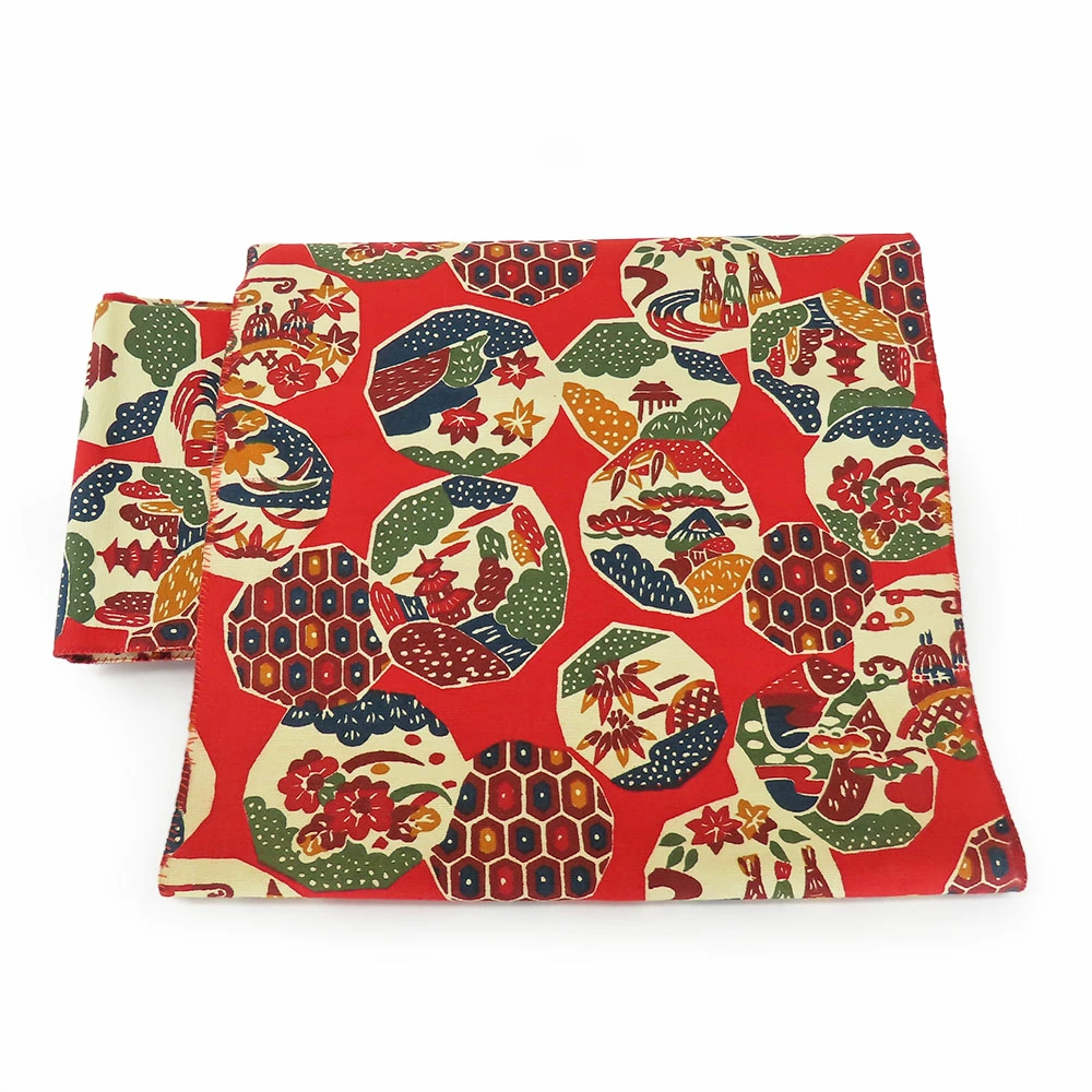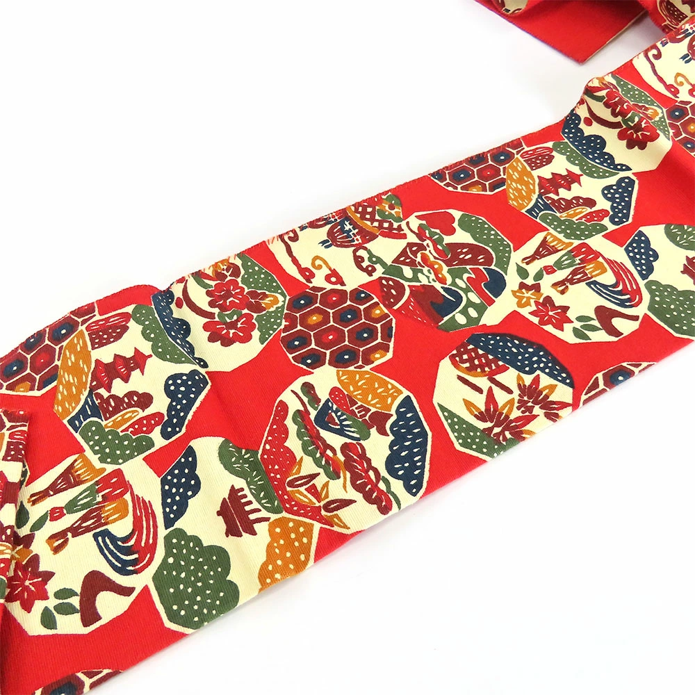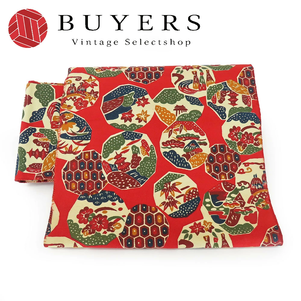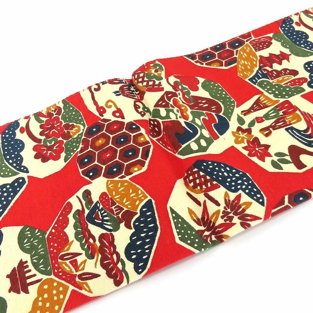 | 品名 | 【中古】 名古屋帯 八寸 名古屋仕立て 正絹 赤 マルチカラー 洒落帯 モダン レディース 女性 |