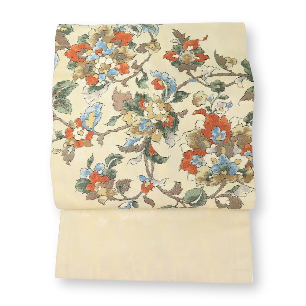 | 品名 | 【中古】 名古屋帯 九寸 正絹 ベージュ 名古屋仕立て 草花柄 レディース 女性 |