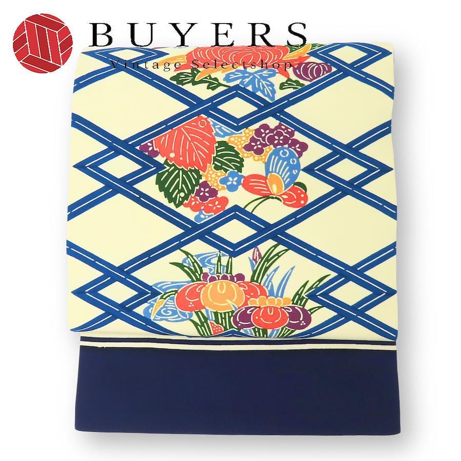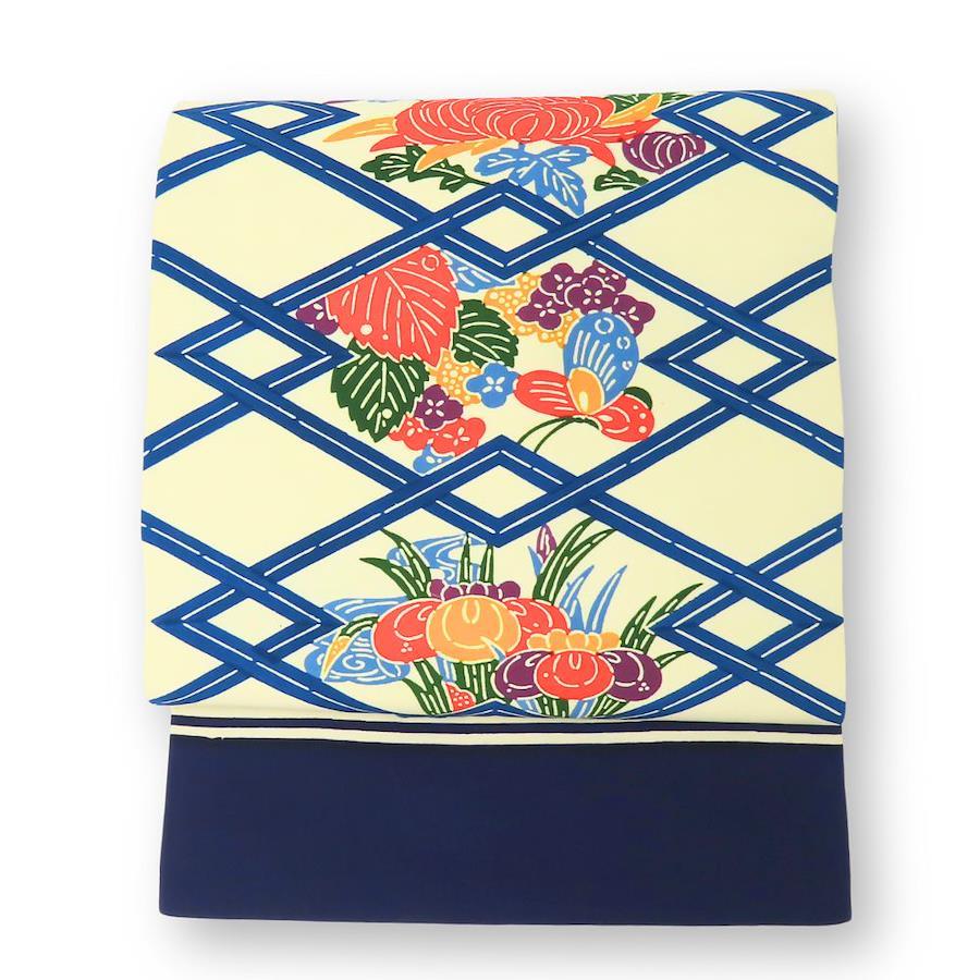 | 品名 | 【中古】 名古屋帯 九寸 正絹 青 赤 黄 緑 京紅型 名古屋仕立 花柄 レディース 女性 |