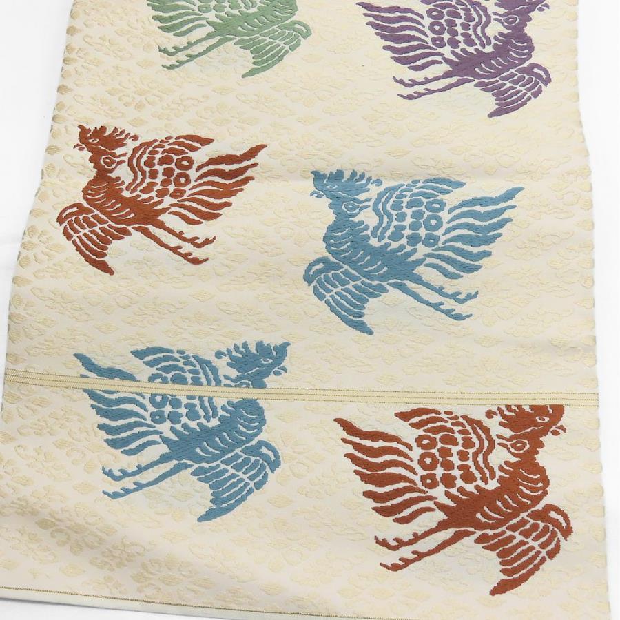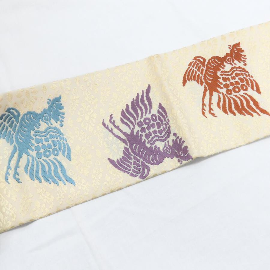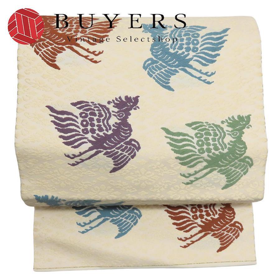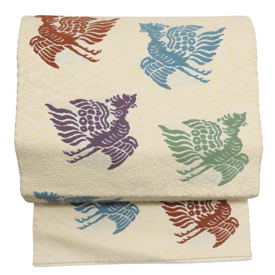品名【中古】 名古屋帯 九寸 正絹(金銀糸除く) アイボリー マルチカラー 鳳凰 名古屋仕立て モダン レディース 女性