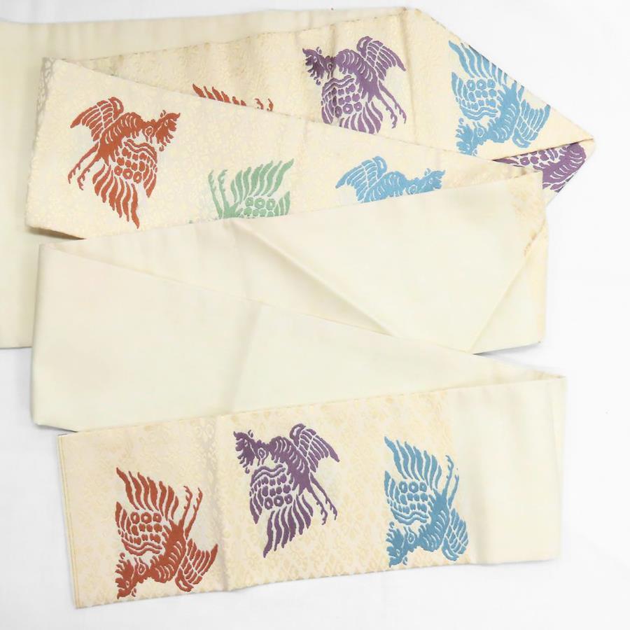 [20% OFF!! Rakuten Super Sale!!] [Pre-owned] Nagoya Obi, 9 inches, Pure Silk (Gold and Silver Threads Excluded), Ivory and Multicolor, Phoenix Design, Nagoya Style, Modern Kimono, Women's