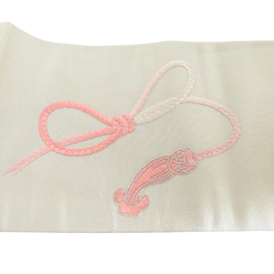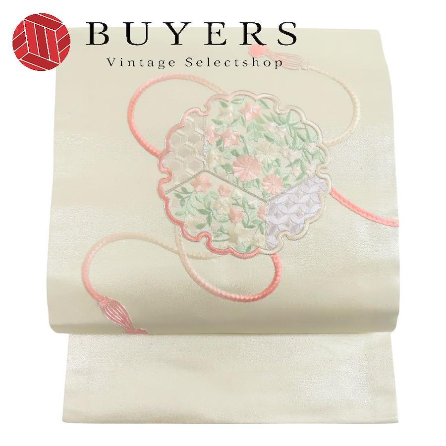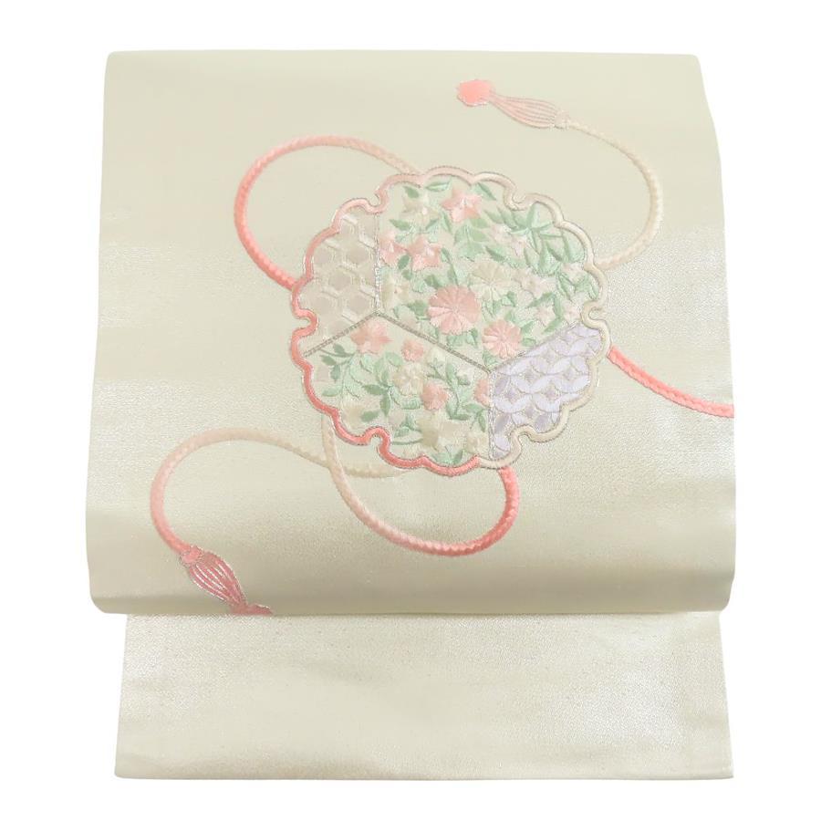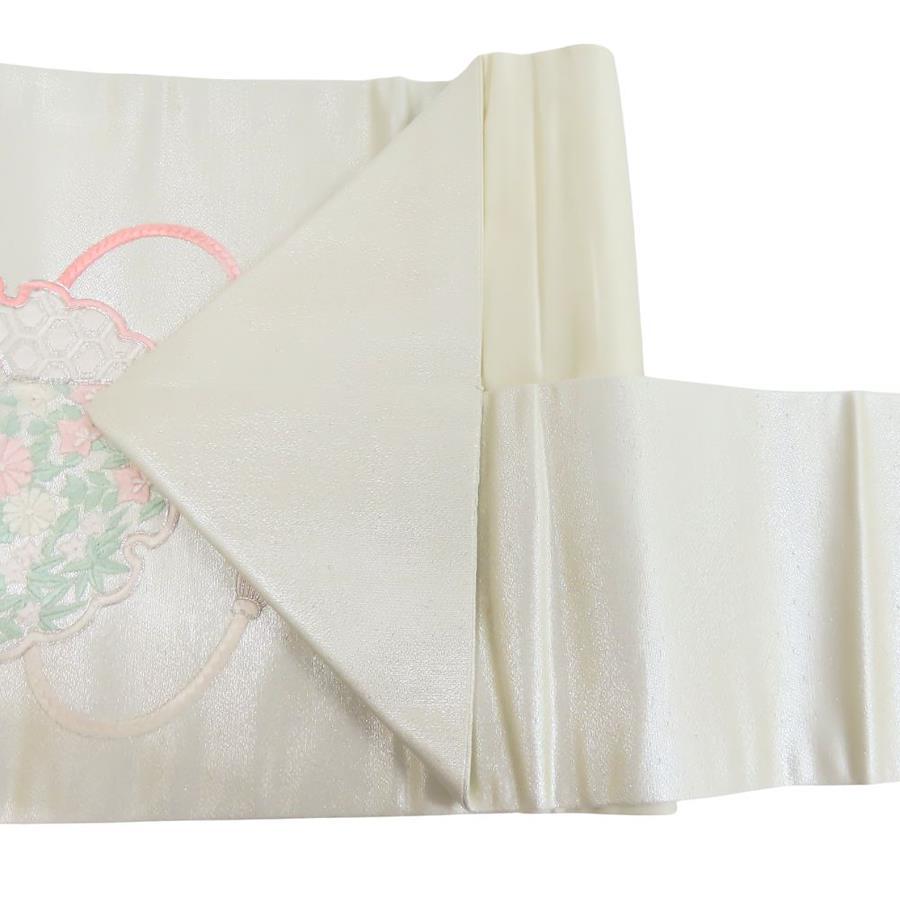 | 品名 | 【中古】 名古屋帯 名古屋仕立て 正絹(金銀糸除く) 乳白色 薄ピンク 銀 レディース 女性 |