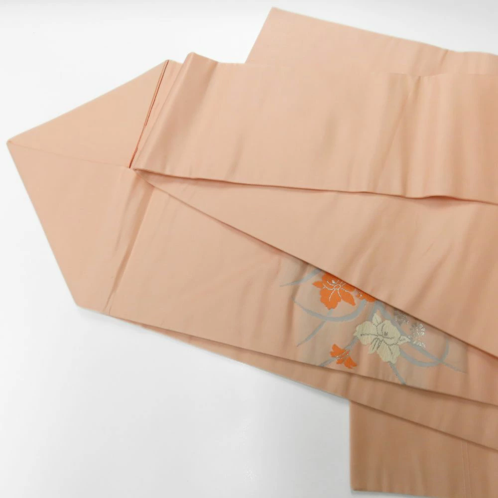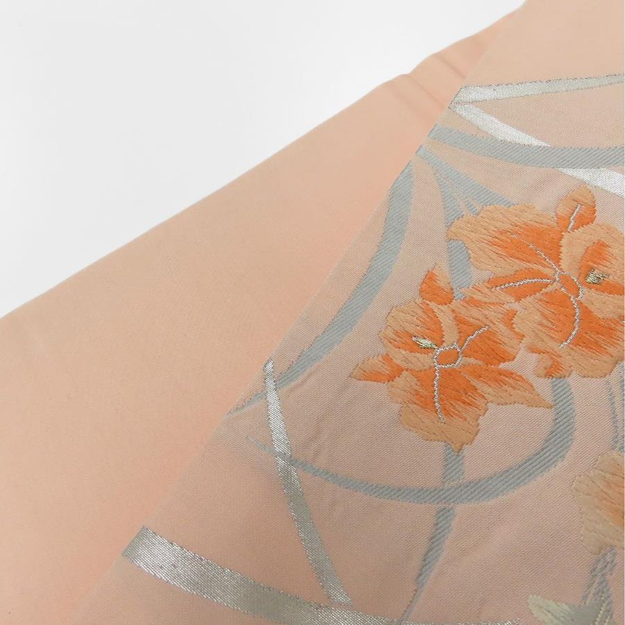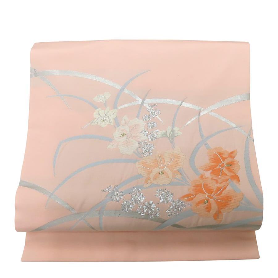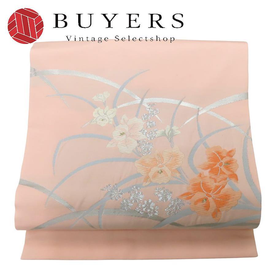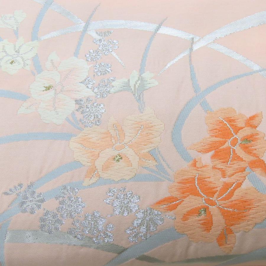 | 品名 | 【中古】 名古屋帯 正絹(金銀糸除く) 薄ピンク系 銀 名古屋仕立て 草花柄 レディース 女性 |