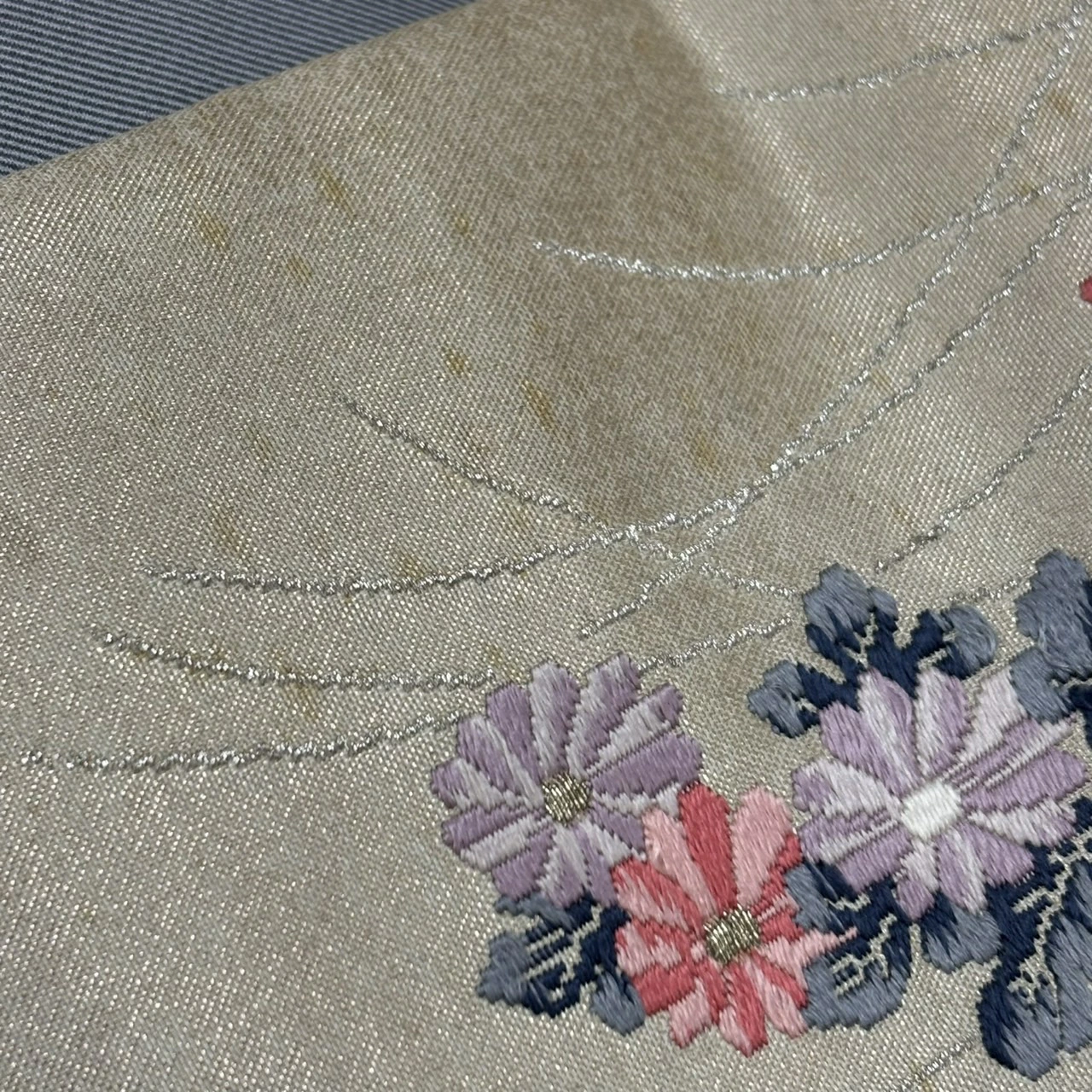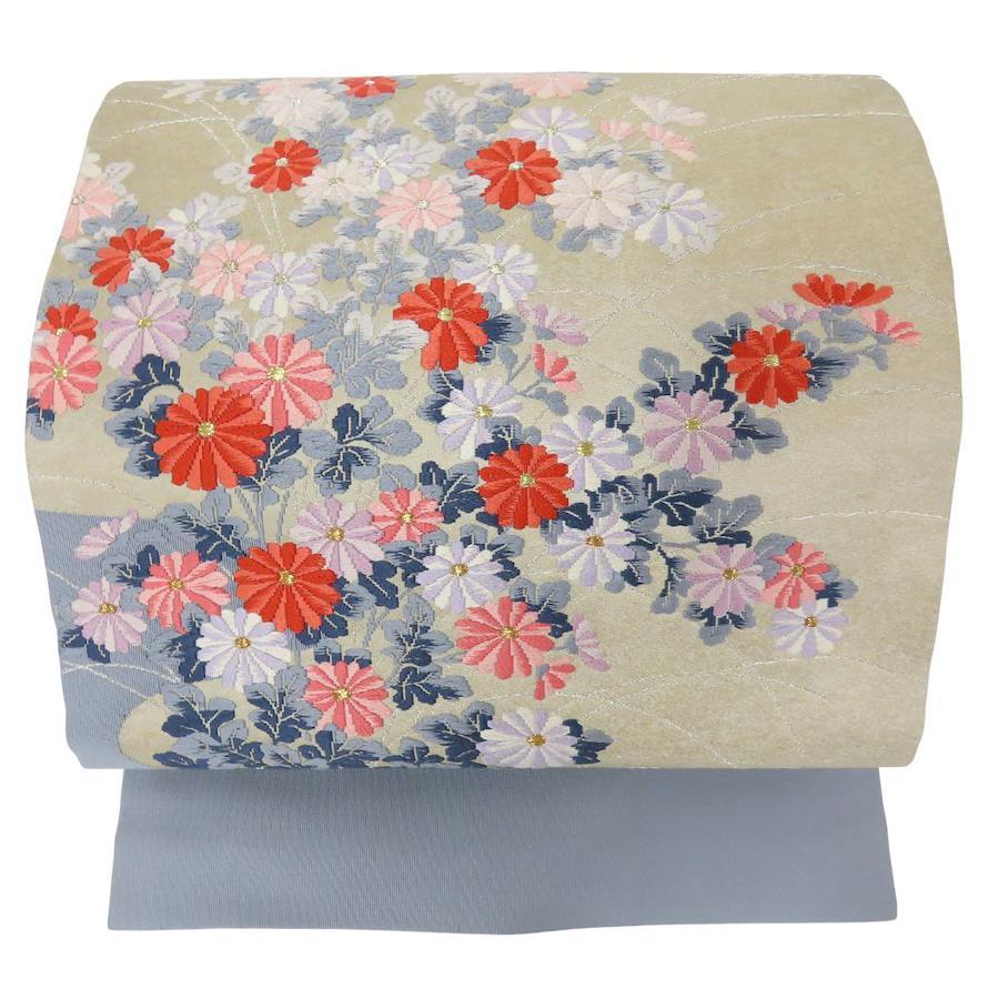 [20% OFF!! Rakuten Super Sale!!] [Pre-owned] Nagoya Obi (Sash) - Pure Silk (Gold and Silver Threads Excluded) - Available in Greige, Dull Blue, Silver, and Wisteria - Nagoya Style - Kimono for Women