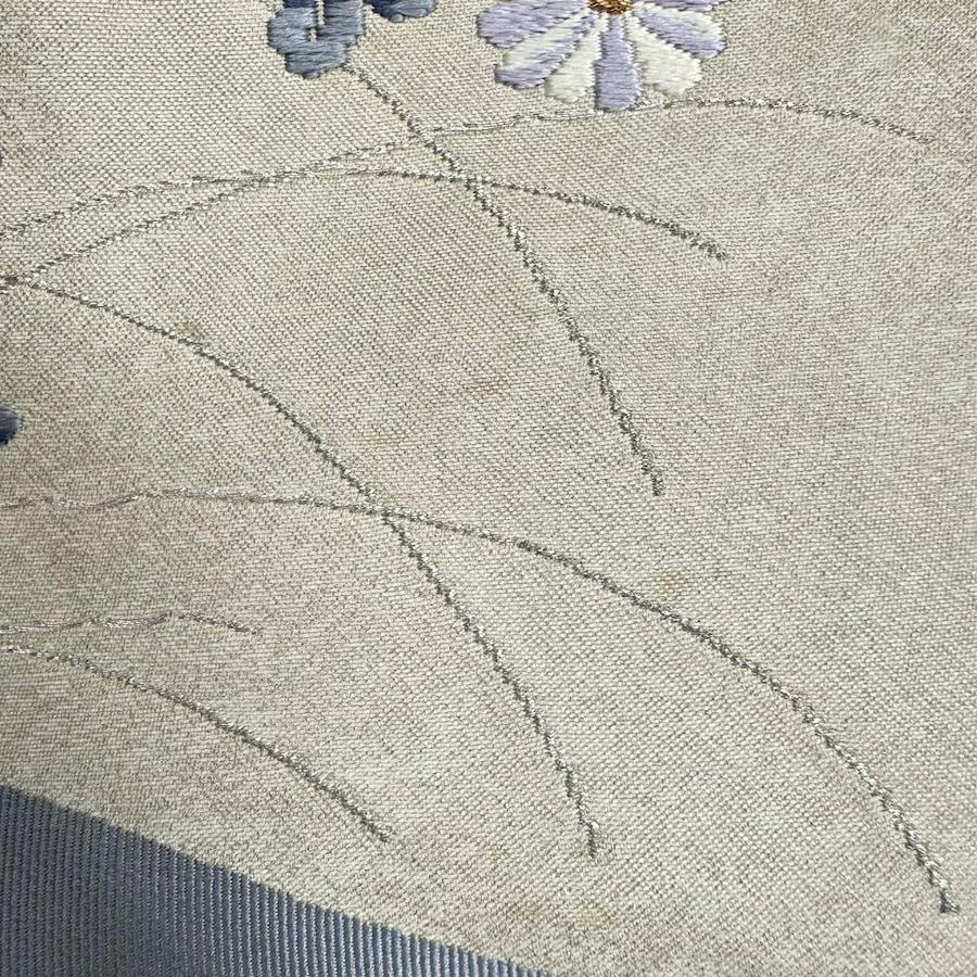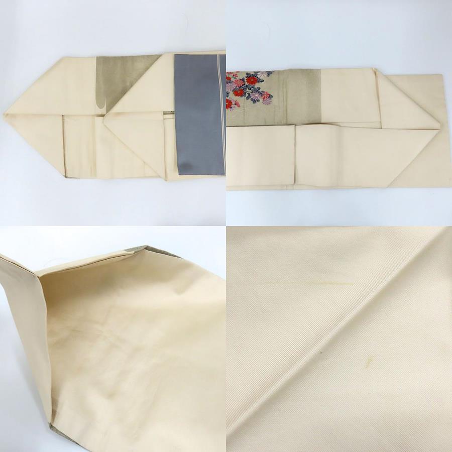 品名【中古】 名古屋帯 正絹(金銀糸除く) グレージュ系 くすみブルー系 シルバー 藤色 名古屋仕立て レディース 女性