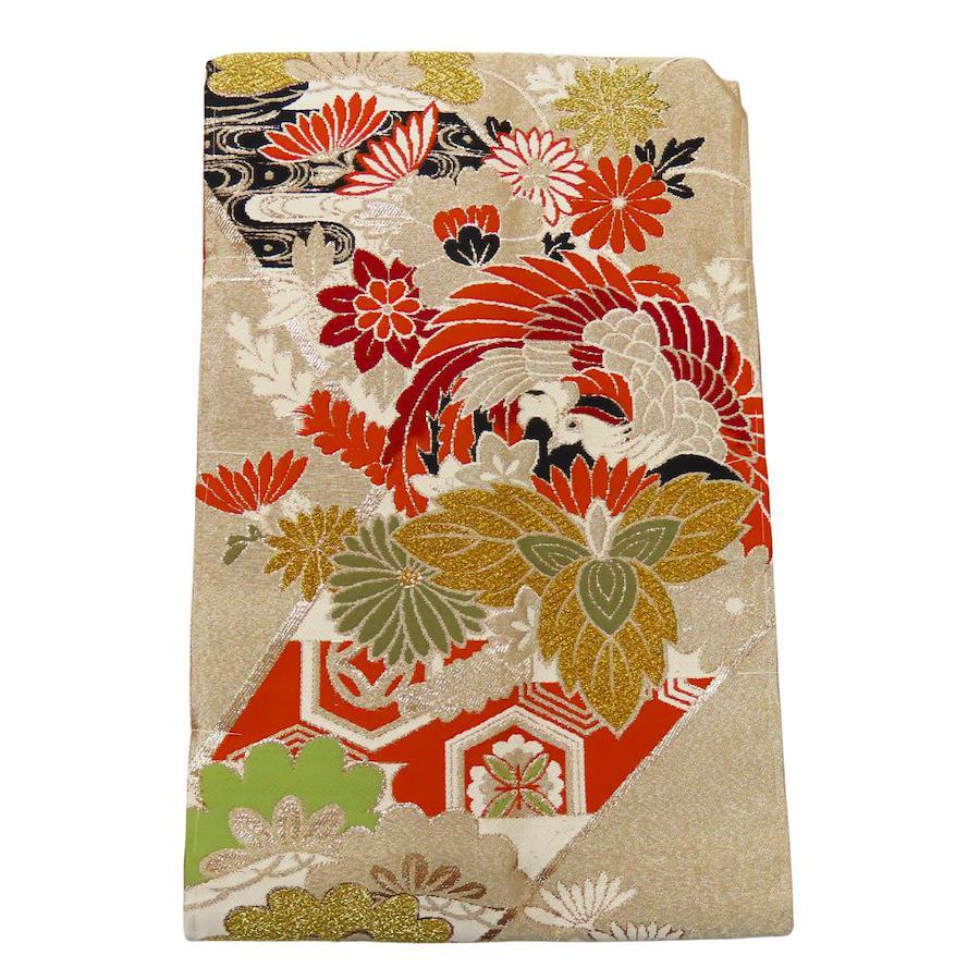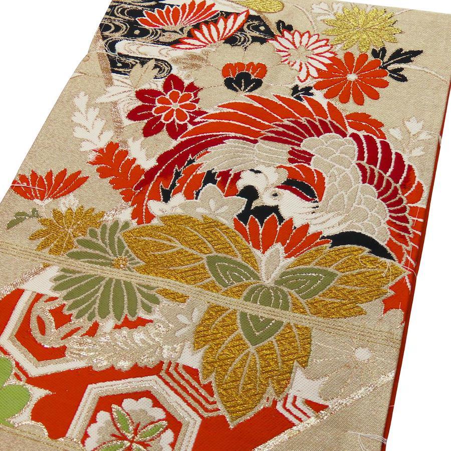 | サイズ | サイズ 全長:約 340cm 幅:約 30cm 帯の柄1:花 帯の柄2:鶴 |