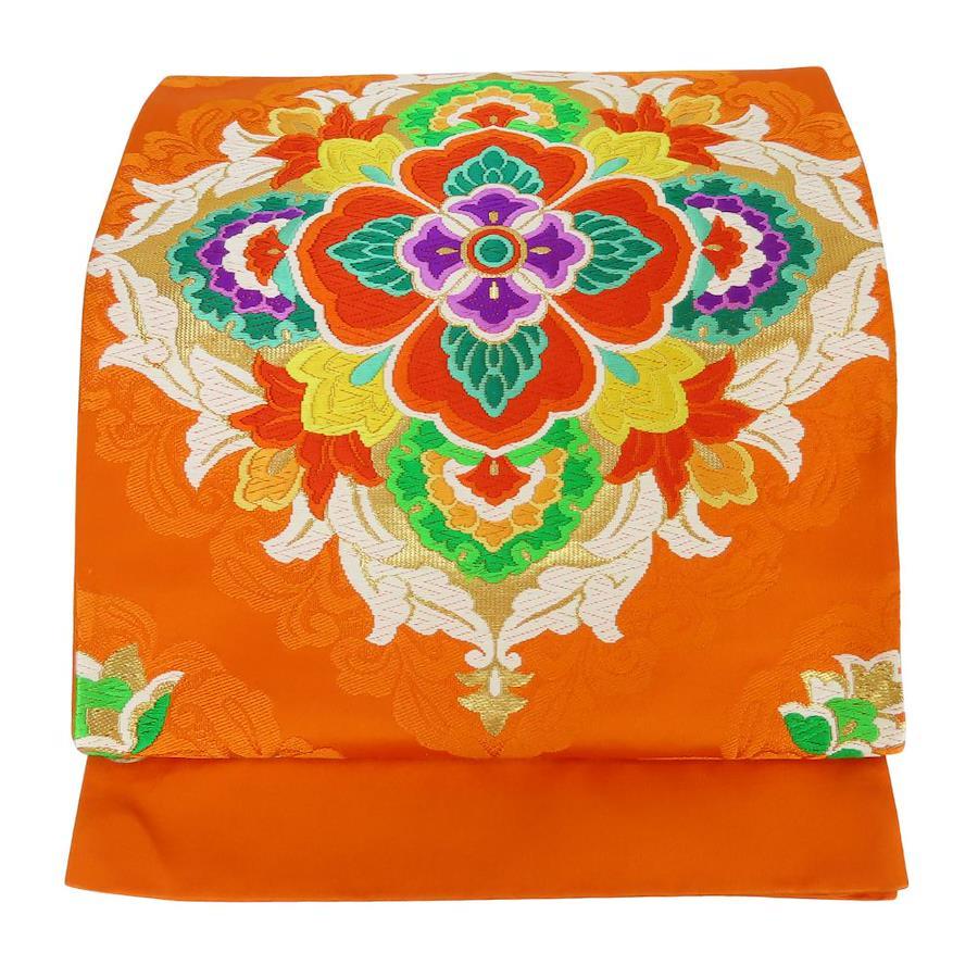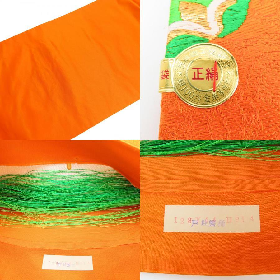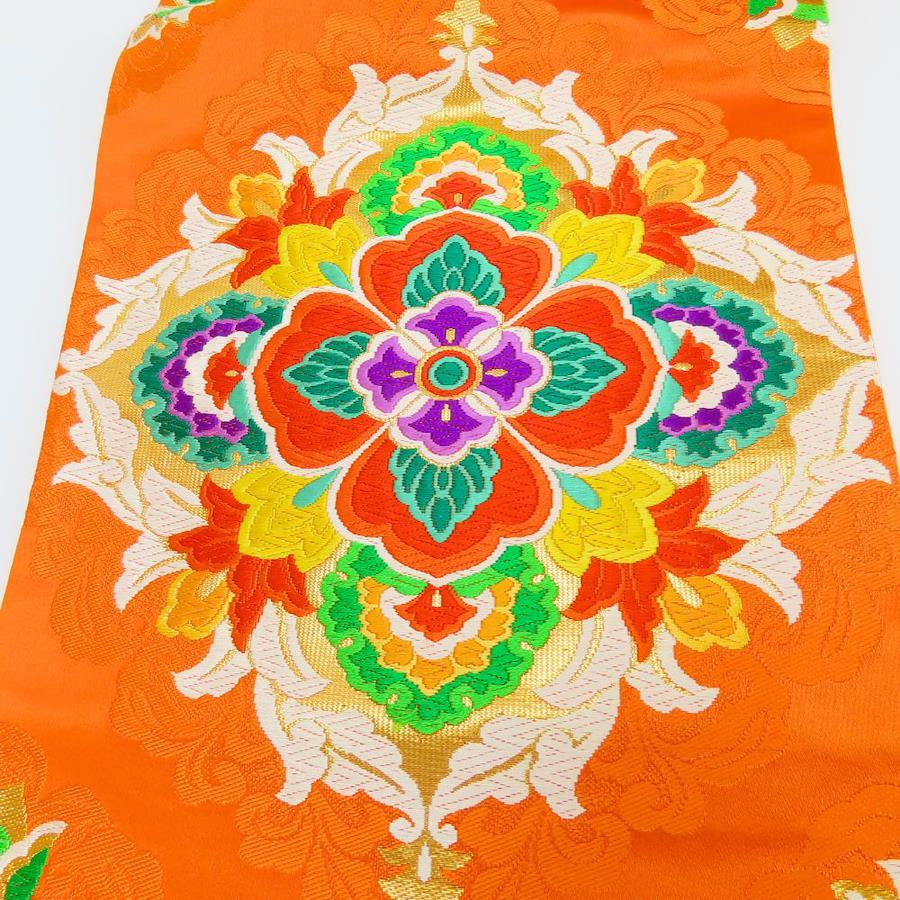| 品名 | 【中古】 袋帯 西陣織 正絹(金銀糸除く) 金糸 オレンジ マルチカラー 振袖用 古典 未仕立て レディース 女性 |