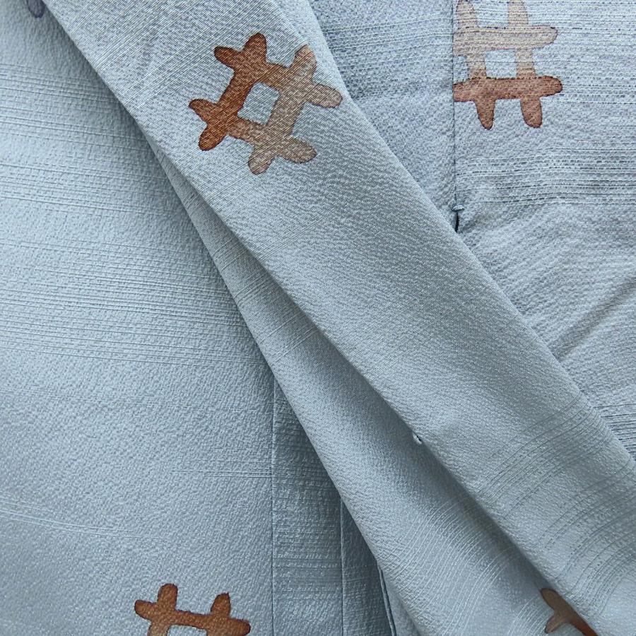 品名【中古】 羽織 単衣 正絹(金銀糸除く) ブルーグレー 裏地無し 井桁柄 モダン レディース 女性