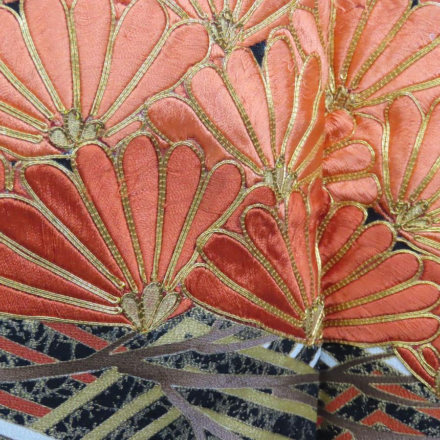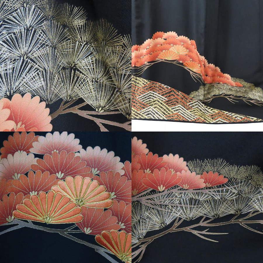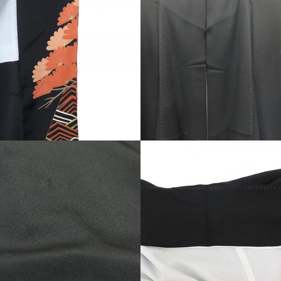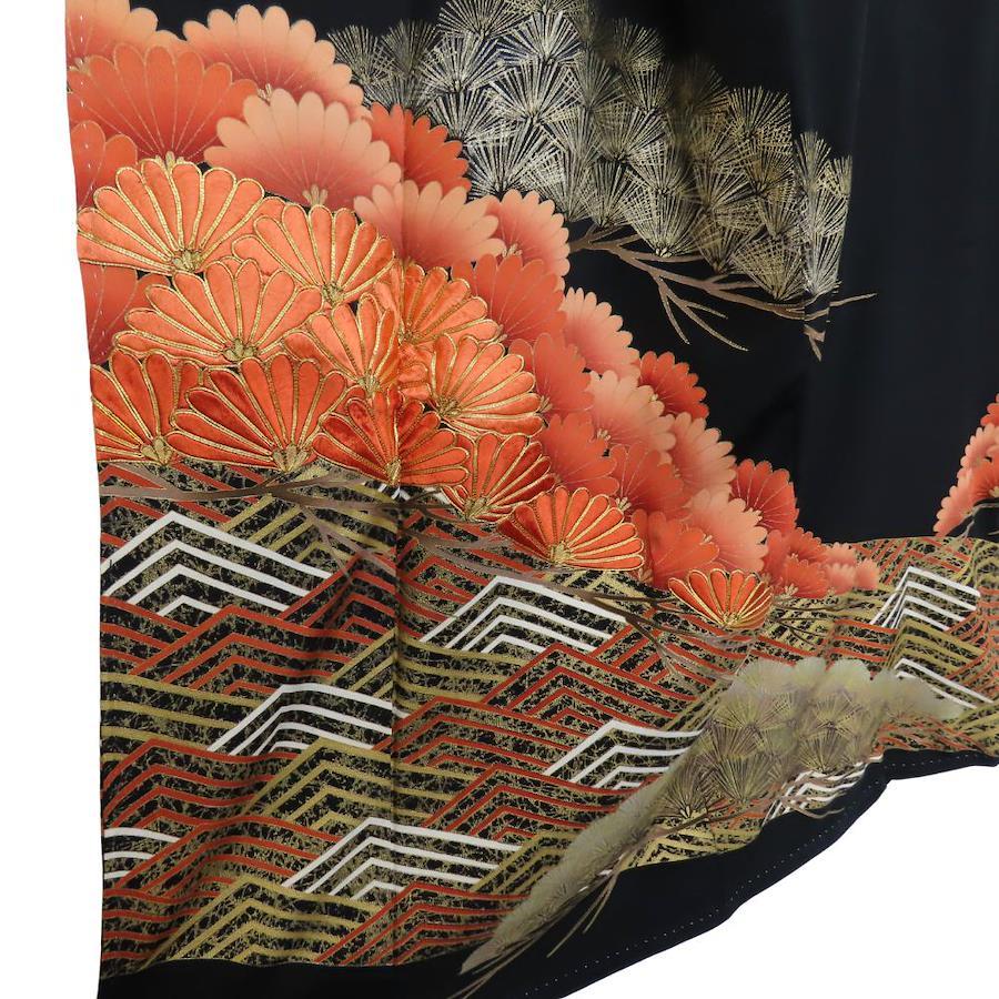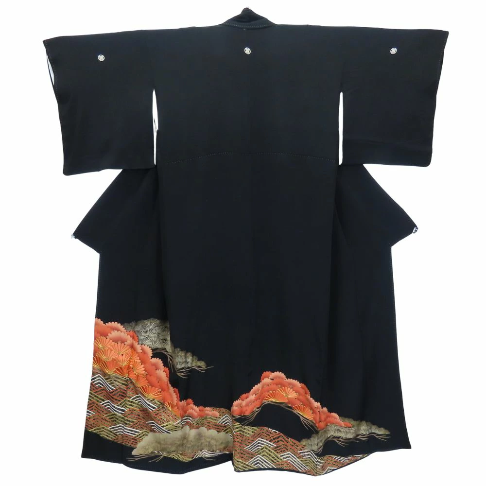 [20% OFF!! Rakuten Super Sale!!] [Pre-owned] Tomesode (Formal Kimono) - Pure Silk (excluding gold and silver threads) - Black, Vermilion, and Gold - Formal Kimono with Thin Rings, Different Hawk Feathers, and Kasamatsu Pattern - Japanese Kimono, Women's