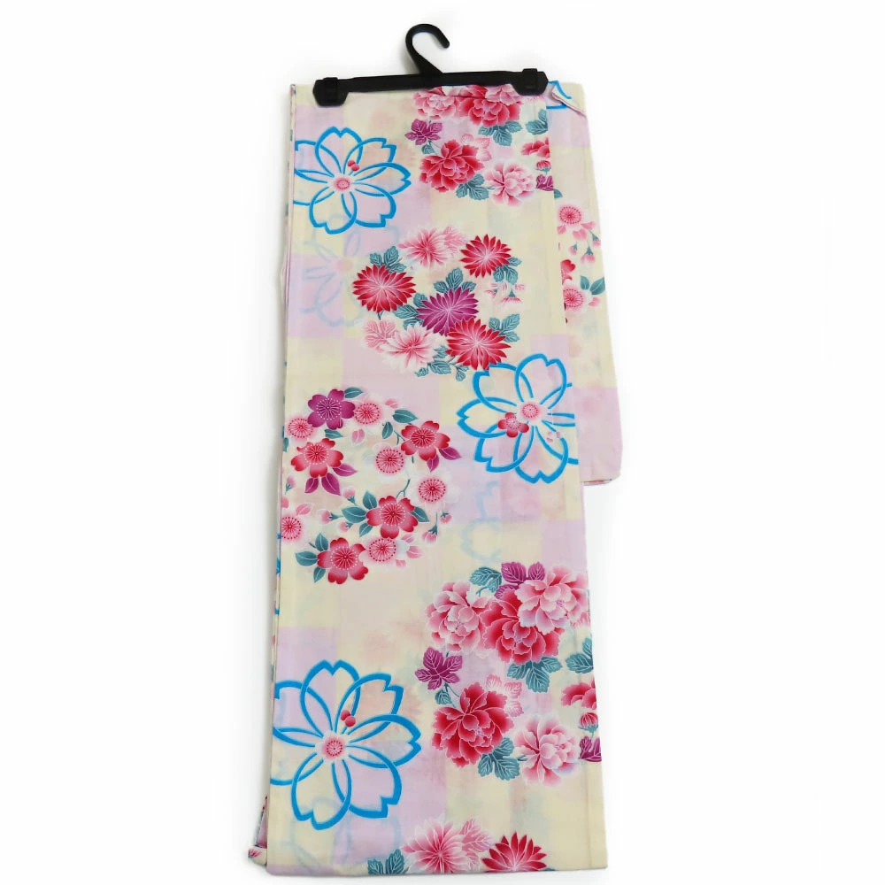 | 品名 | 【中古】 浴衣 未使用展示品 綿 ベージュ系 ピンク 赤 マルチカラー 市松柄 花柄 可愛い レディース 女性 |