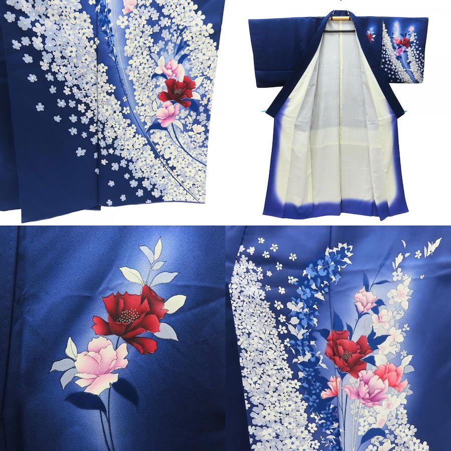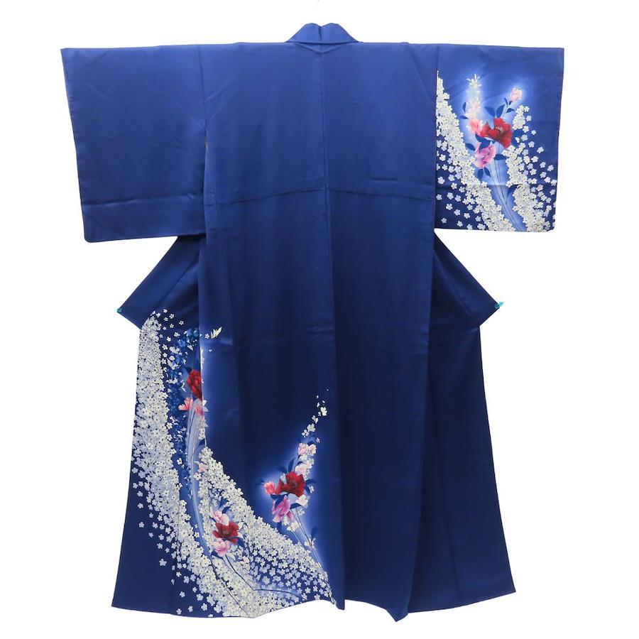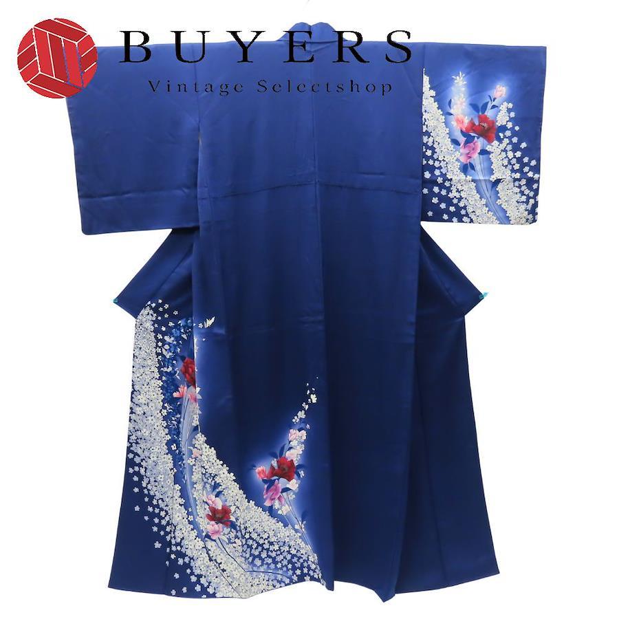 | 品名 | 【中古】 訪問着・付下 附下 正絹 群青色 小花 バチ襟 レディース 女性 |