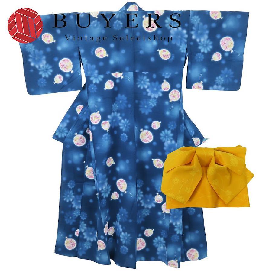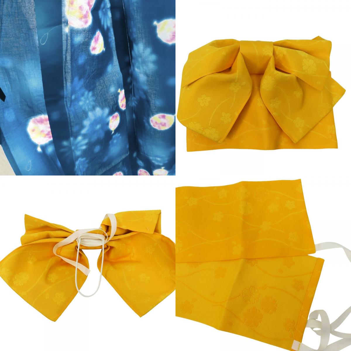 | 品名 | 【中古】 浴衣 セット 作り帯 綿 ポリエステル ブルー系 イエロー ナカノヒロミチ 半巾帯 リボン レディース 女性 |
