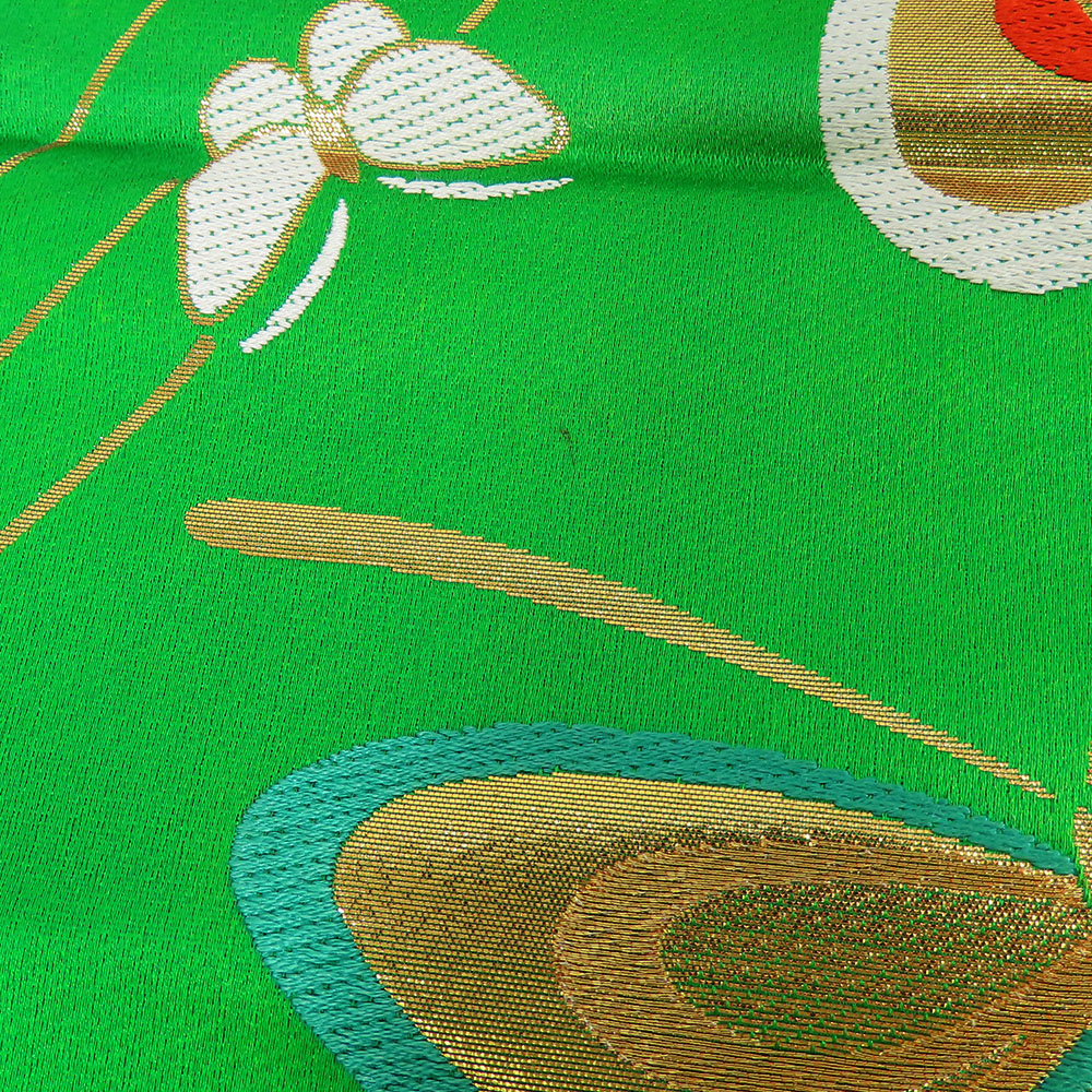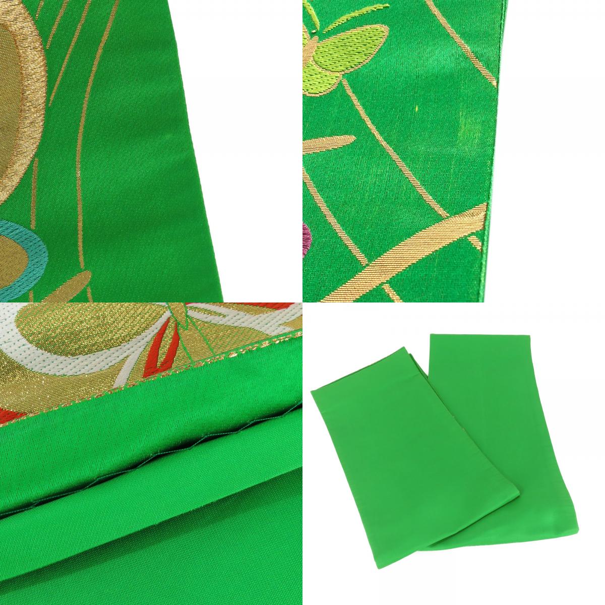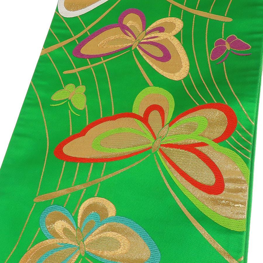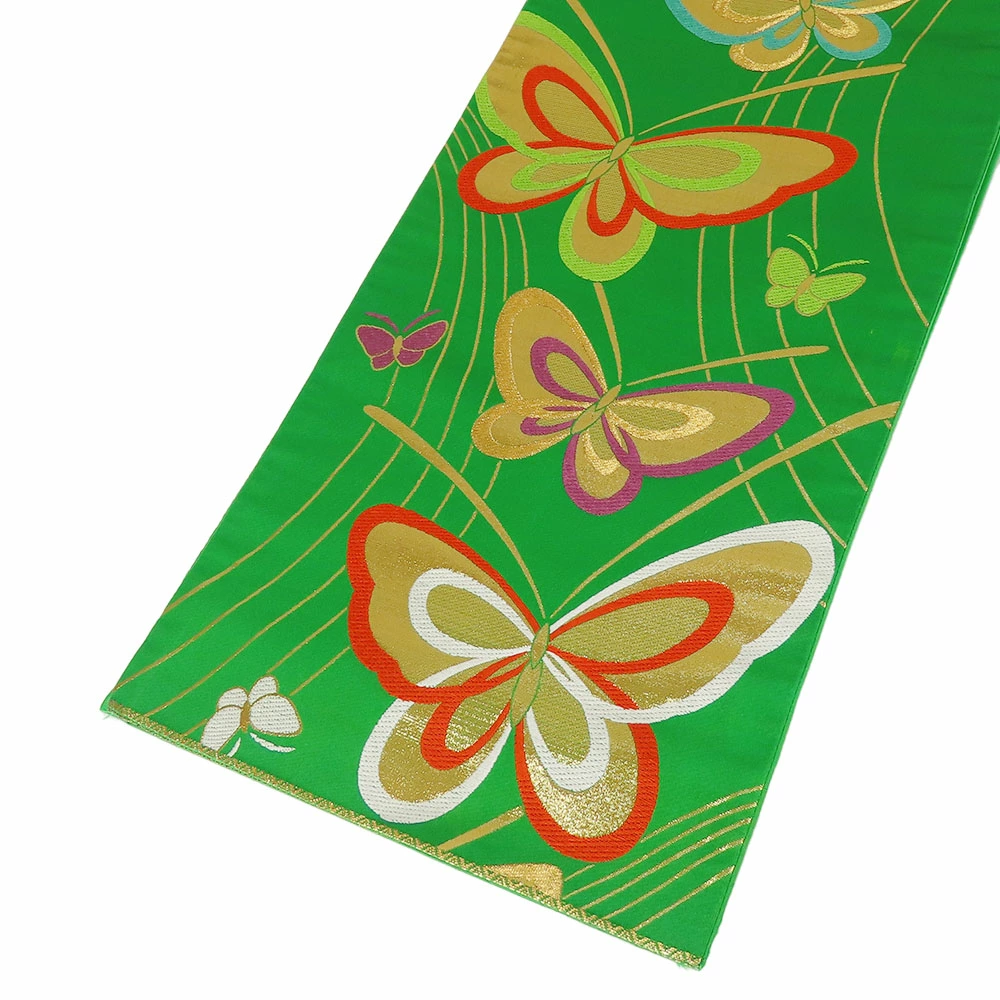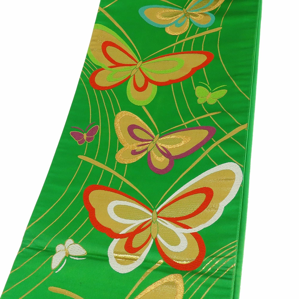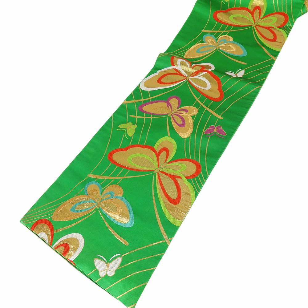 | 品名 | 【中古】 袋帯 祝い着 七五三 正絹(金銀糸除く) グリーン 蝶 |
