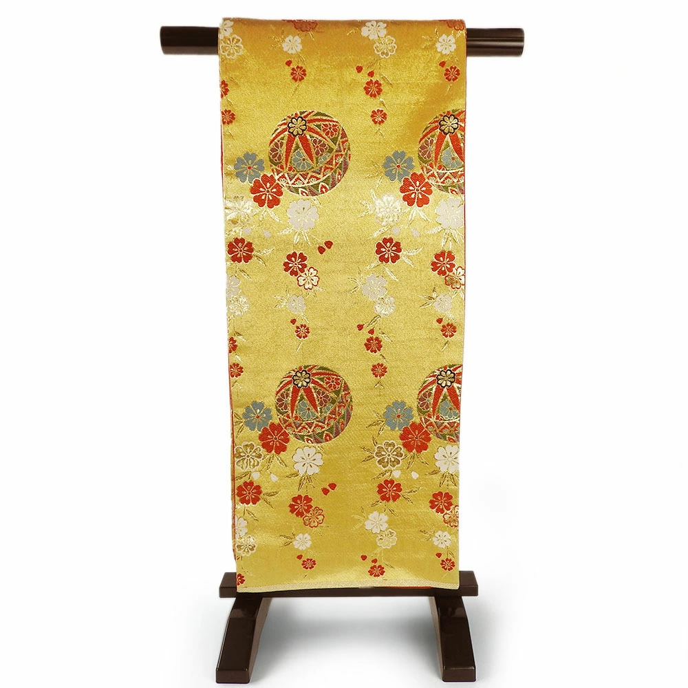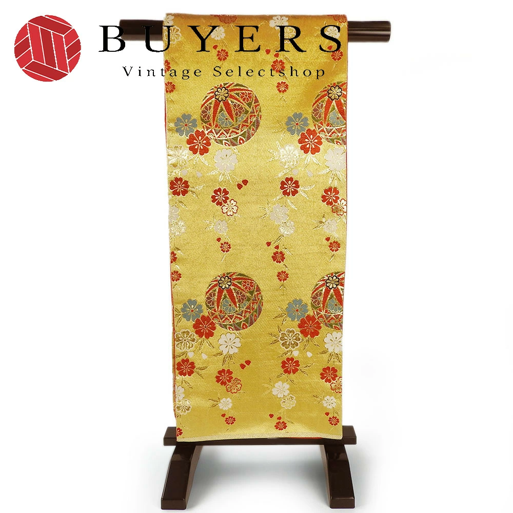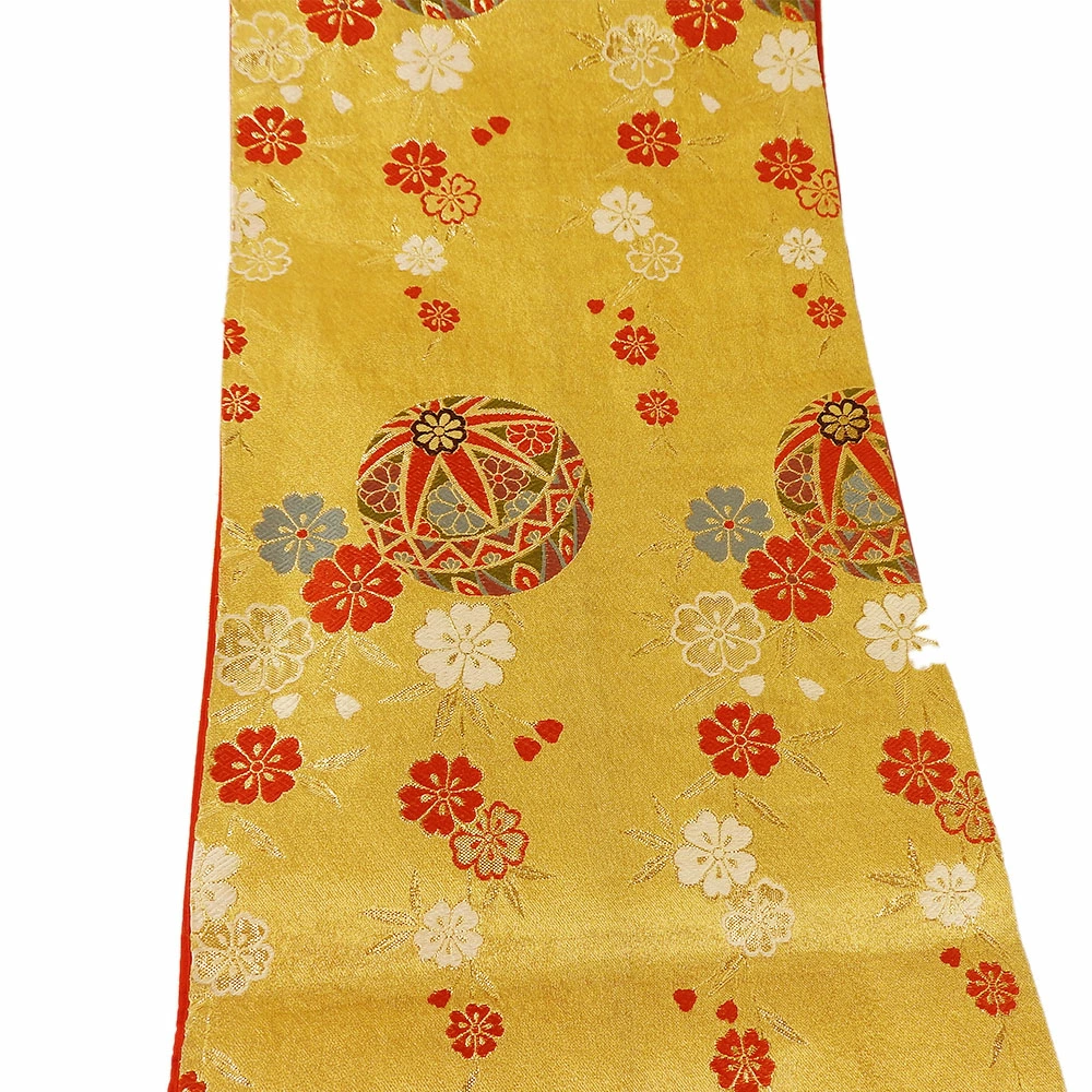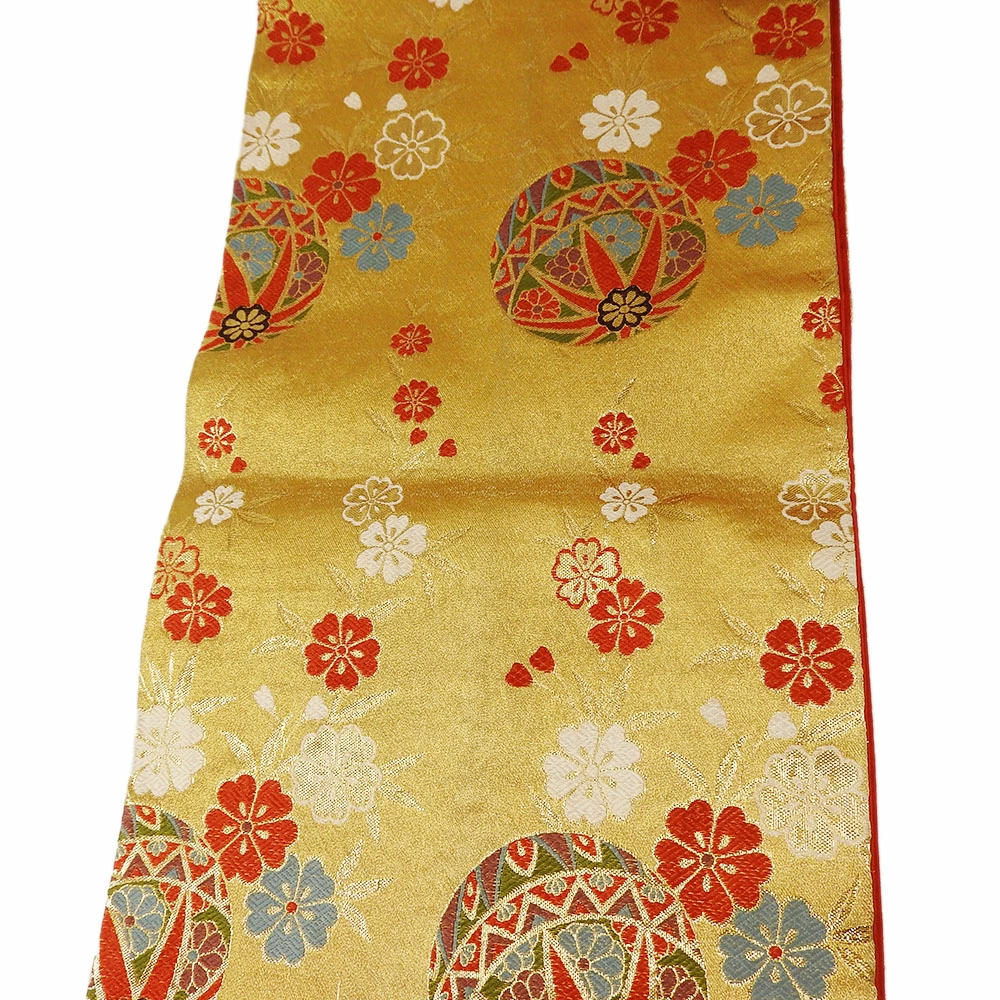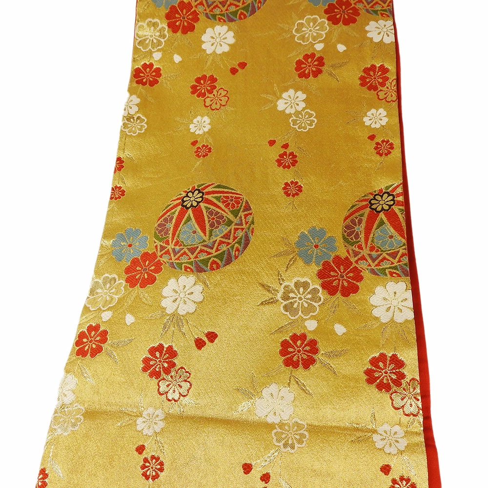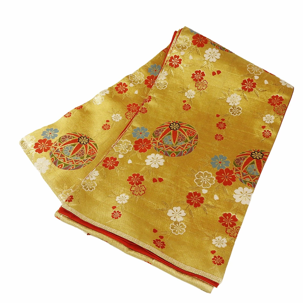 [20% OFF!! Rakuten Super Sale!!] [Used] Fukuro Obi (Sash) for Celebrations, Shichi-Go-San, Polyester, Synthetic Fiber, Gold and Red, Temari (Temari Ball) Pattern, Flower Design, Kimono