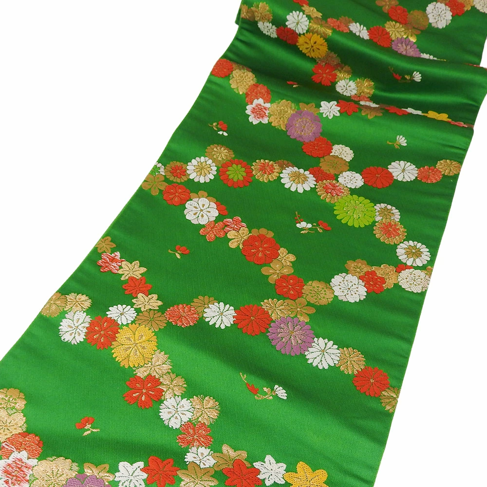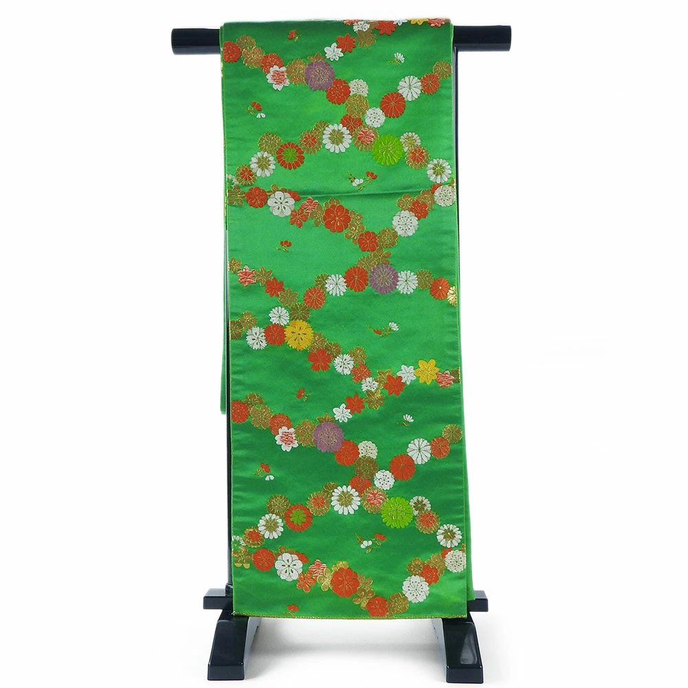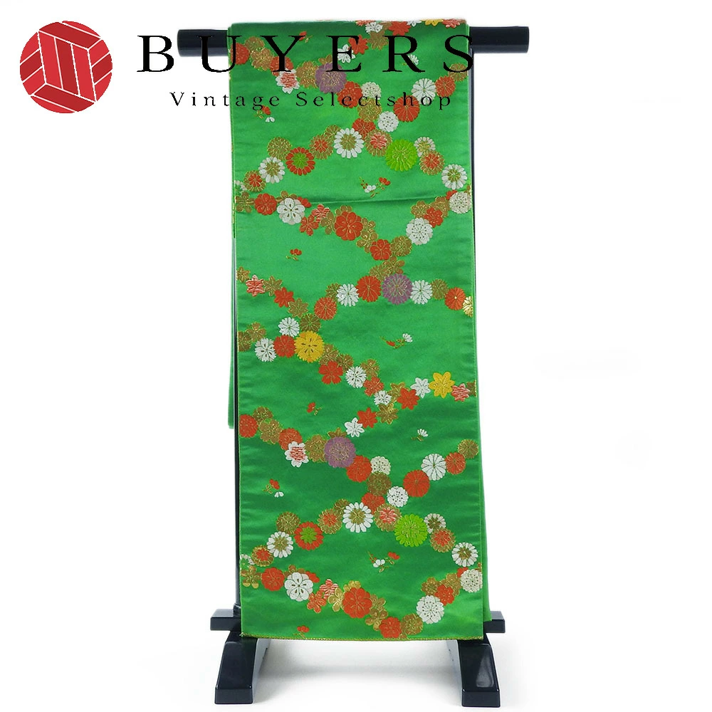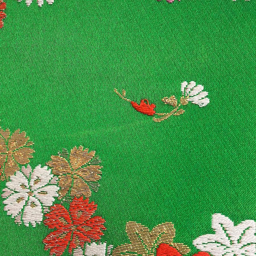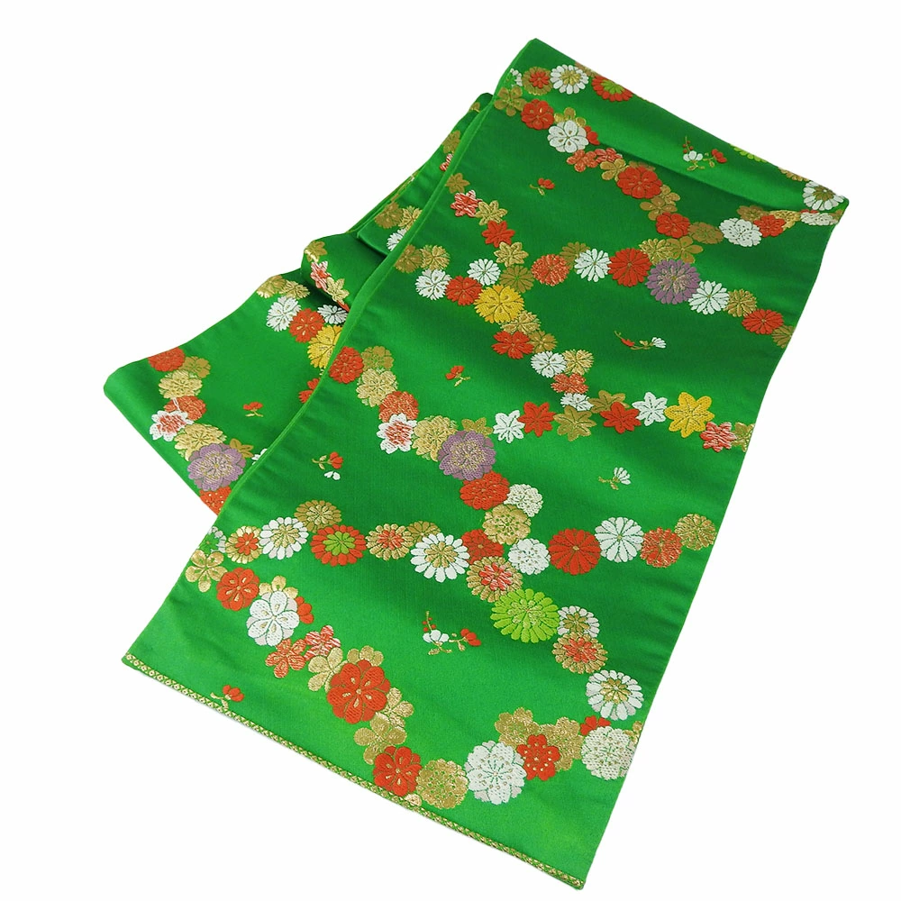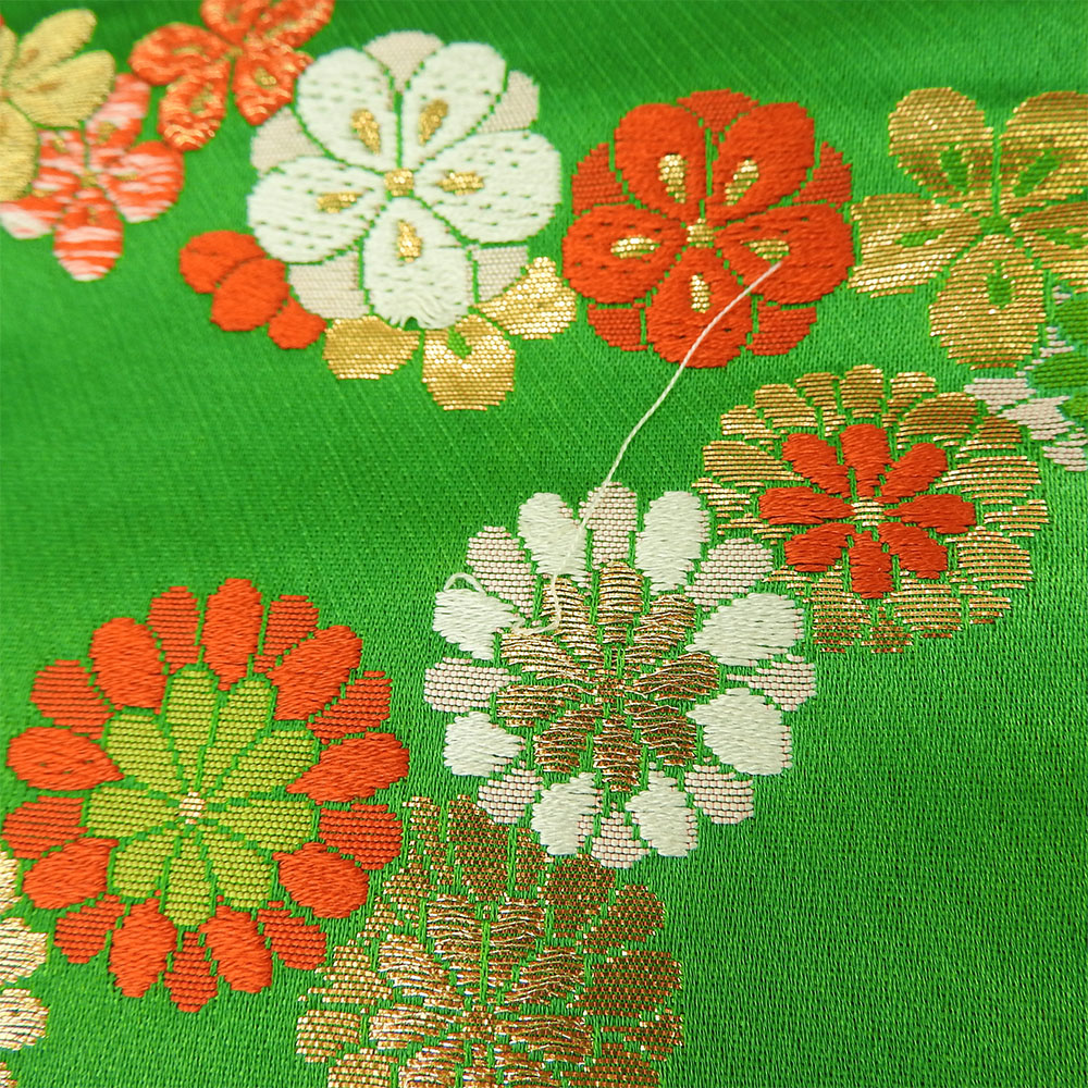 | 品名 | 【中古】 袋帯 七五三用 正絹(金銀糸除く) グリーン 子供 呉服 花 |